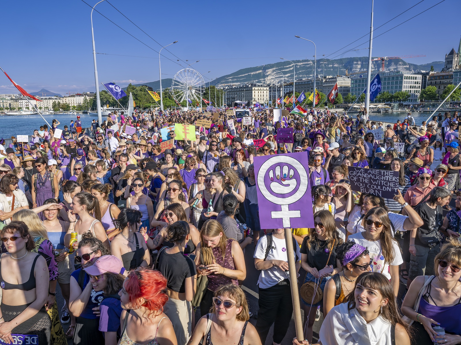 Après une journée chargée d’actions et d’émotions, 30000 femmes ont participé au cortège qui a défilé dans la ville et sur le pont du Mont-Blanc.