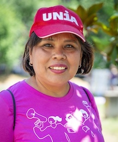 «Il faut défendre nos droits: on veut de meilleurs salaires, des retraites dignes et de meilleures conditions de travail. Je travaille quatre heures par jour en horaire coupé, tôt le matin et en fin de journée: du coup, ce n’est pas du tout pratique avec mes enfants. Je suis membre chez Unia depuis trois ans. Le syndicat me soutient et m’aide, et j’en suis très satisfaite. C’est grâce au syndicat qu’on a obtenu des hausses des salaires minimums.»