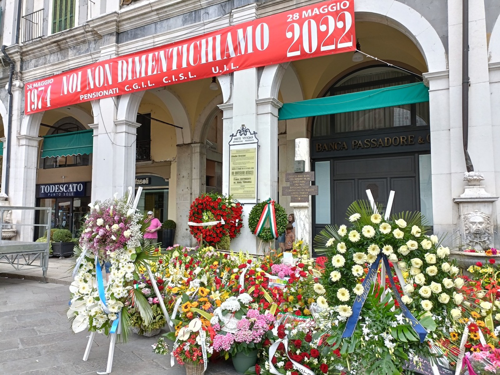 Ici même, au pied d’une colonne, le matin du 28 mai 1974, un kilo d’explosif dissimulé dans une poubelle en métal transformait un rassemblement antifasciste en cauchemar. Malgré la pluie, des centaines de personnes avaient répondu à l’appel des syndicats, du PCI et du Comité antifasciste pour dénoncer la stratégie de la tension et le terrorisme «noir» menaçant la démocratie italienne.
