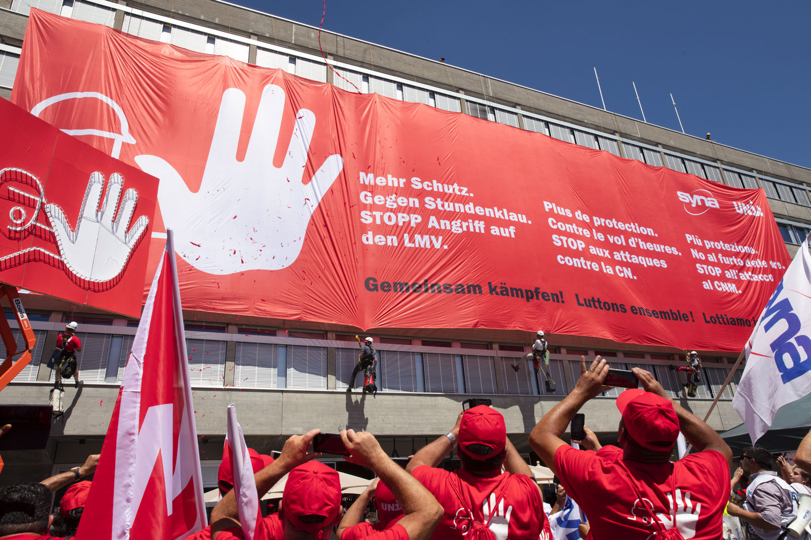 Lors du rassemblement final sur l’Helvetiaplatz, Bruno Almeida, contremaître vaudois, a bien résumé les sentiments partagés par les maçons: «La pression augmente constamment et, au lieu d’améliorer les conditions de travail, les entrepreneurs nous attaquent frontalement», a dit le syndicaliste d’Unia. «Nous allons lutter pour notre Convention nationale, pour une protection en cas d’intempéries, pour moins de travail temporaire, pour que le temps de déplacement soit payé correctement et pour une augmentation salariale. Et, si nécessaire, nous ferons grève», a déclaré, pour sa part, Nico Lutz, le responsable du secteur construction d’Unia.