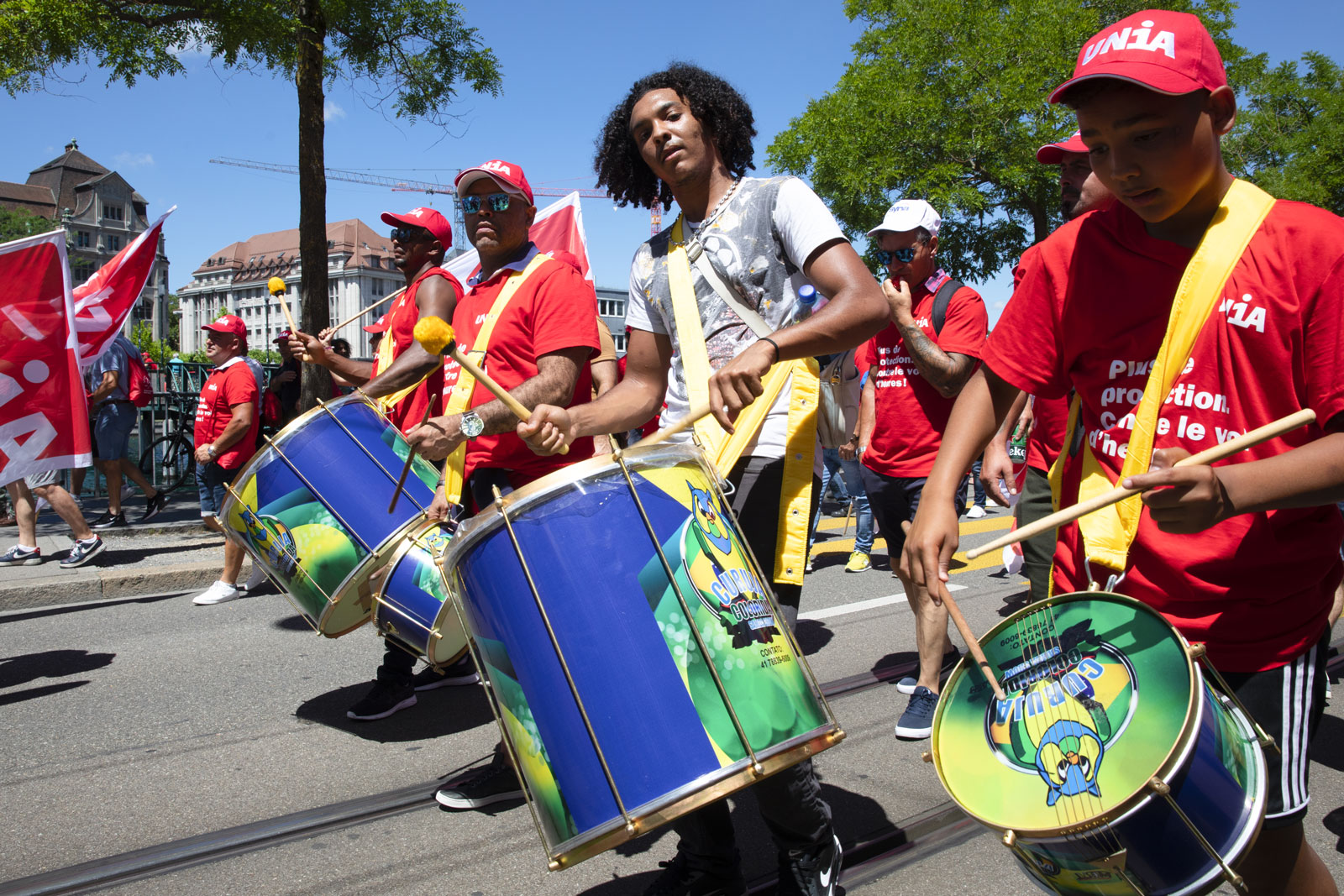Une banda brésilienne a marqué la cadence des travailleurs venus de Genève. © François Graf/Strates
