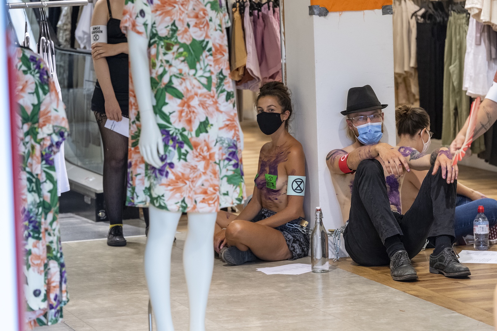 Action d'Extinction Rebellion dans un magasin H&M à Bienne.