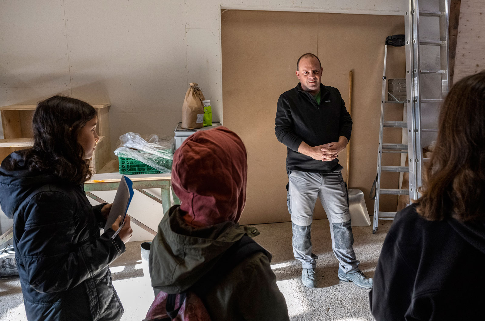 Paysan-meunier, Stéphane Deytard s’est converti à l’agriculture biologique et régénérative. Visite de son moulin pas comme les autres, avec trois écolières, lors de la Journée Oser tous les métiers