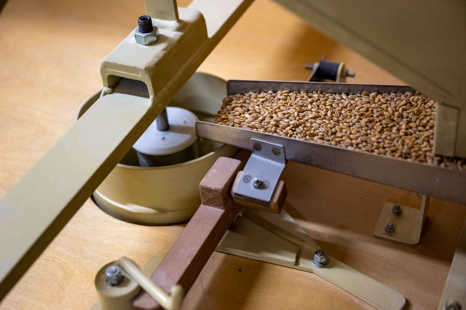 Les céréales modernes sont issues de la station de recherche de Changins. «J’aime utiliser tous les types de céréales: blé, épeautre, amidonnier, seigle…» précise l’agriculteur, qui les moud ensuite sur son moulin artisanal. La meule consiste en deux pierres de granit juxtaposées, sur ressort, qui permettent d’écraser l’amande tout en conservant le germe. Une technique ancestrale améliorée par les frères Astrié, anciens mécaniciens chez Peugeot, qui, en 1962, décident d’un retour à la terre. Après vingt ans de recherches, leur meule est fonctionnelle. Depuis le début de sa commercialisation dans les années 2000, l’intérêt est grandissant.
