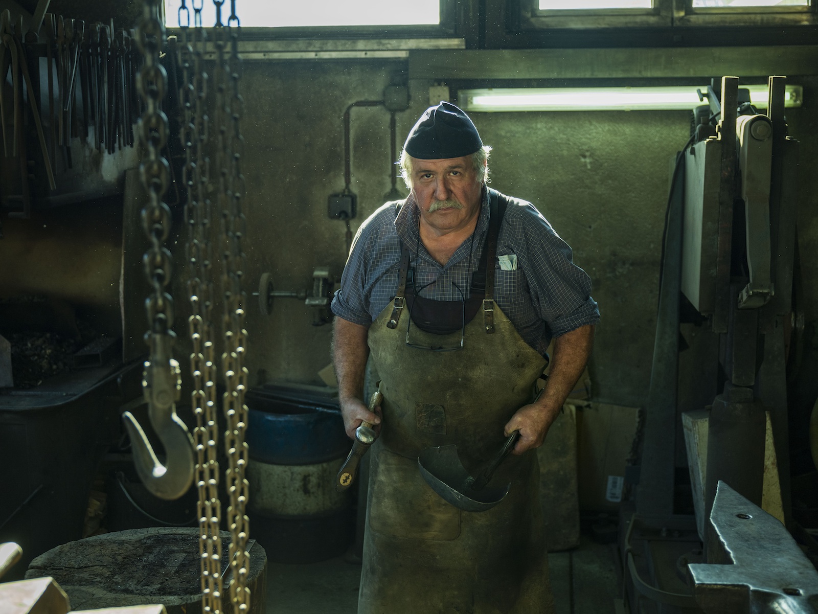 Il aura fallu insister un peu pour décrocher un rendez-vous avec Pierre Turrian. Et pour cause. La rareté de son métier lui a souvent valu la visite des journalistes. «J’ai reçu dans mon atelier plus de 30 médias et participé à 25 émissions de télévision, chiffre l’homme de 72 ans, sans oublier les innombrables tours organisés pour des groupes et les demandes de particuliers.» Une célébrité chronophage qui ne lui est pas montée à la tête pour autant. Bien que connu comme le loup blanc à Château-d'Œx et loin à la ronde, l’artisan trouve surtout sa fierté dans le travail bien fait. Et la perpétuation d’une tradition aujourd’hui menacée. «Je laisse derrière moi du patrimoine. Mieux qu’un travail de comptable», sourit Pierre Turrian sous ses épaisses moustaches, petit chapeau caractéristique vissé sur la tête – «une confection de ma femme pour faire barrage à la sueur» – qui se définit comme «un animal en voie de disparition». Un animal au cuir dur et au tempérament bien trempé qui affirme, depuis qu’il exerce le métier de chaudronnier voilà 45 ans, avoir donné des milliards de coups de marteau. «De quoi le devenir», rigole le manuel, seul à exercer cette activité en Suisse romande. Une voie choisie par défaut – Pierre Turrian aurait souhaité devenir paysan, mais ses parents ne possédaient pas de domaine – qu’il ne regrette toutefois pas le moins du monde.