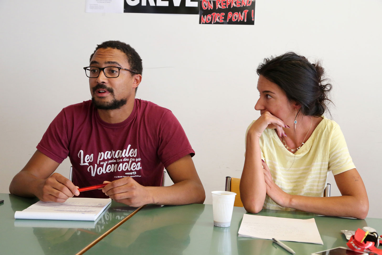 deux syndicalistes d'unia Genève du tertiaire en conférence de presse