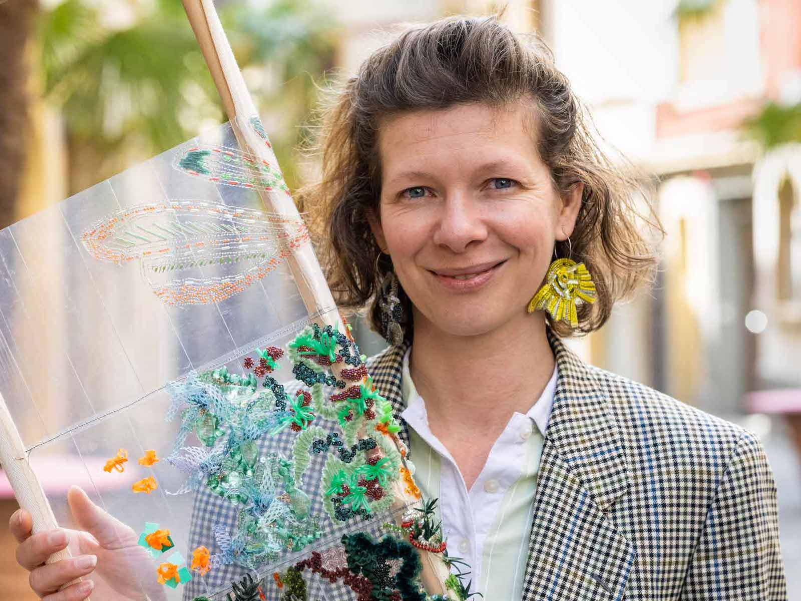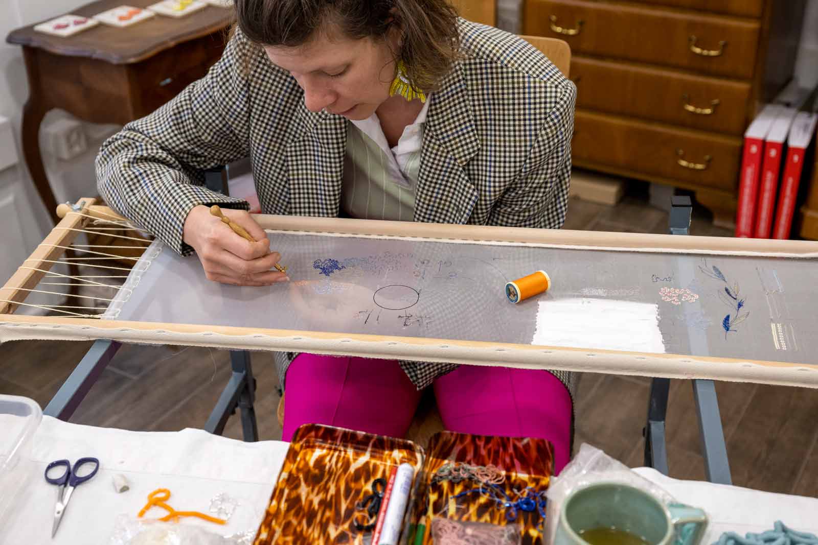 Brodeuse d’art, Emmanuelle Perriard crée un univers de perles et de paillettes qui fait écho à sa personnalité colorée et à son militantisme. Rencontre dans son atelier neuchâtelois