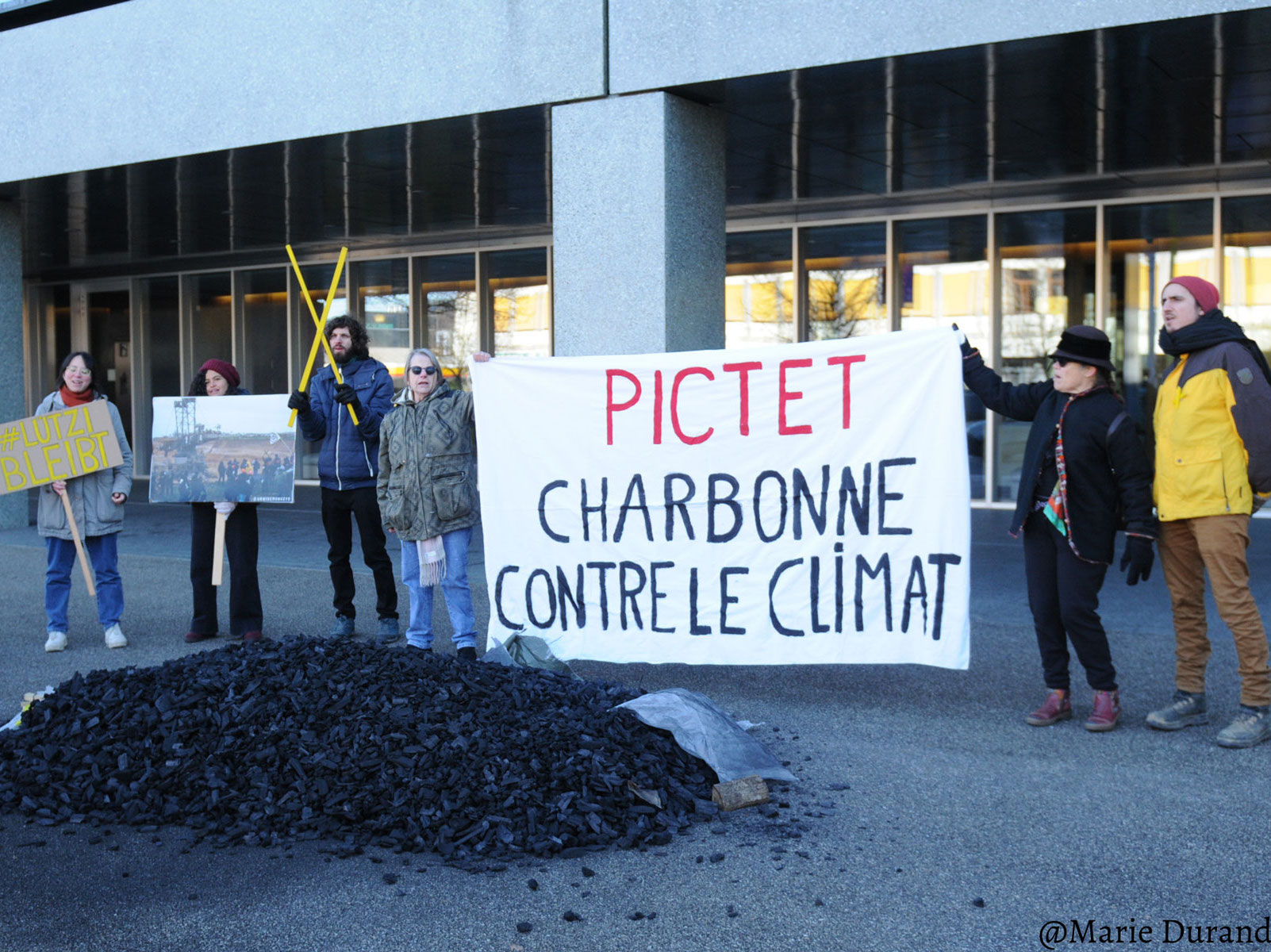 «Une hypocrisie climatique: les acteurs financiers engagés pour la neutralité carbone jettent de l’huile sur le feu.» Ce sont huit ONG, dont Reclaim Finance et BreakFree Suisse, qui le disent. Elles viennent de publier un rapport édifiant qui dénoncent le greenwashing des institutions financières, incluant les banques suisses telles Credit Suisse, UBS ou encore Pictet. Toutes continuent d’injecter des centaines de milliards de dollars dans les sociétés développant de nouveaux projets d’énergies fossiles. Alors qu’ils ont adhéré au Glasgow Financial Alliance For Net Zero (GFANZ). Ce groupe, formé lors de la conférence sur le climat COP26 à Glasgow, se décrit pourtant comme une coalition mondiale d'institutions financières engagées à accélérer la décarbonation de l'économie. «Au total, 229 des plus grands développeurs d’énergies fossiles du monde ont reçu des soutiens financiers de la part des 161 membres de GFANZ», indique un communiqué de Reclaim Finance et de BreakFree Suisse. Concrètement, ces entreprises développent des nouvelles centrales, mines et infrastructures liées au charbon ou des nouveaux champs, pipelines et terminaux pétroliers et gaziers. Autant de projets incompatibles avec l’objectif de limiter le réchauffement à 1,5°C, comme le préconise entre autres l’Agence internationale de l’énergie. La destruction du village de Lützerath, dans l’ouest de l’Allemagne, pour permettre à RWE d’étendre sa mine de charbon en est un exemple criant. Pictet est l’un des principaux investisseurs de cette multinationale. La semaine dernière, BreakFree, la Grève du climat et le collectif Climate Justice ont symboliquement dénoncé son rôle dans le réchauffement climatique (photo).