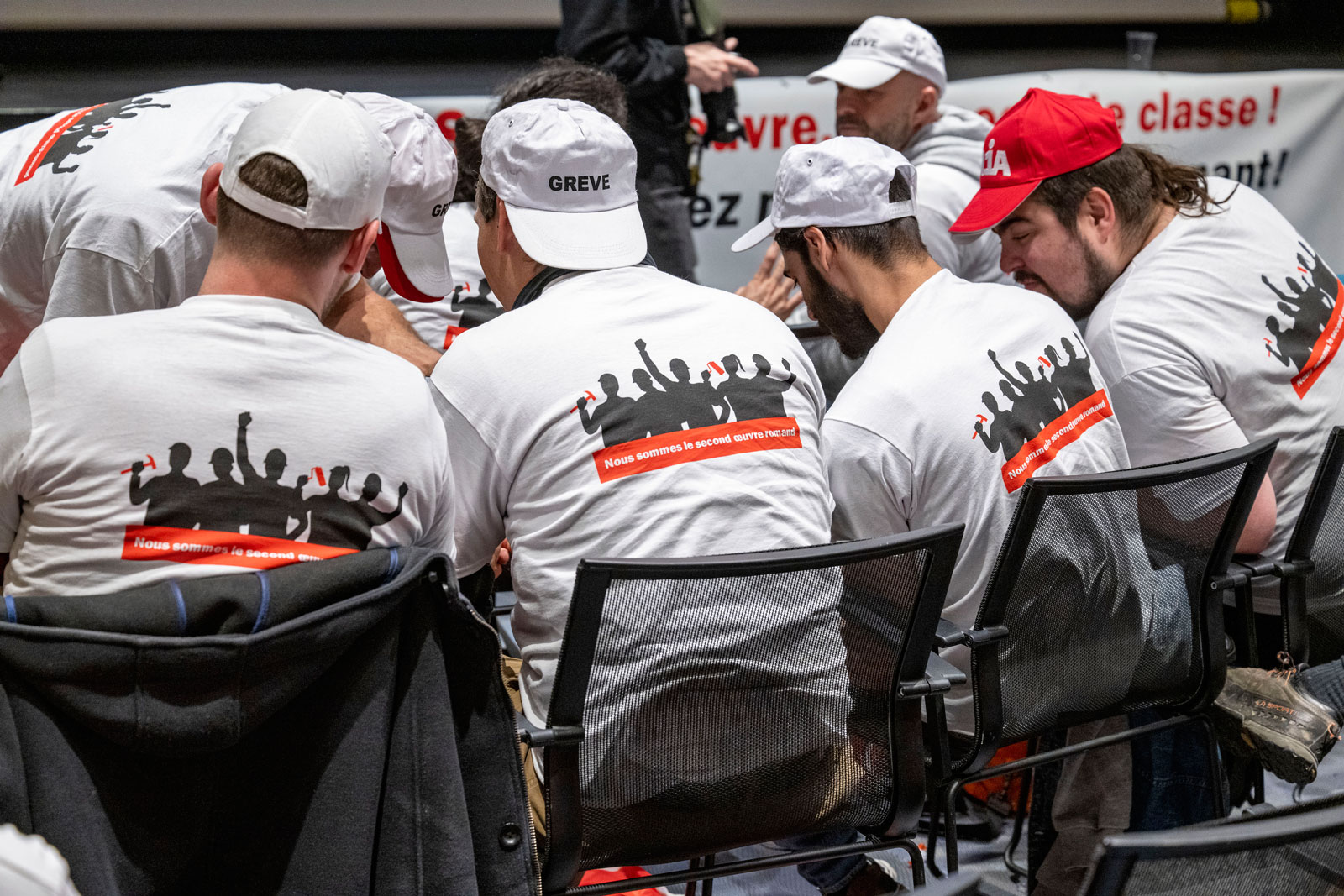 Peu avant le cortège, une assemblée générale a réuni plus d’une centaine de charpentiers, de menuisiers, de plâtriers-peintres, de carreleurs et de poseurs de sol de toute la Suisse romande. Un petit air de grève de la construction planait dans l’assemblée écœurée par les conditions de travail délétères dans la branche et la stagnation des salaires depuis une décennie. En préambule, Aldo Ferrari, coresponsable du secteur des Arts et métiers et responsable du second œuvre romand d’Unia, a rappelé les origines de la fête du 1er Mai. Soit la grève des 400000 travailleurs et travailleuses à Chicago en 1886, dont certains ont payé de leur vie pour avoir défendu les droits syndicaux.