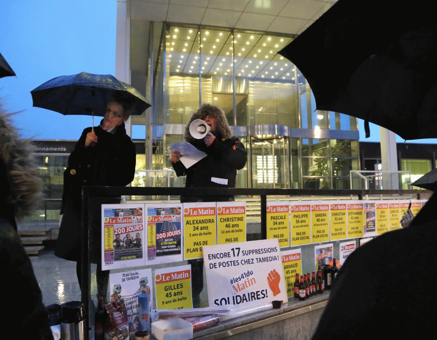Pour protester contre la restructuration radicale annoncée dernièrement par l’éditeur zurichois, des actions ont eu lieu à Genève et à Lausanne.