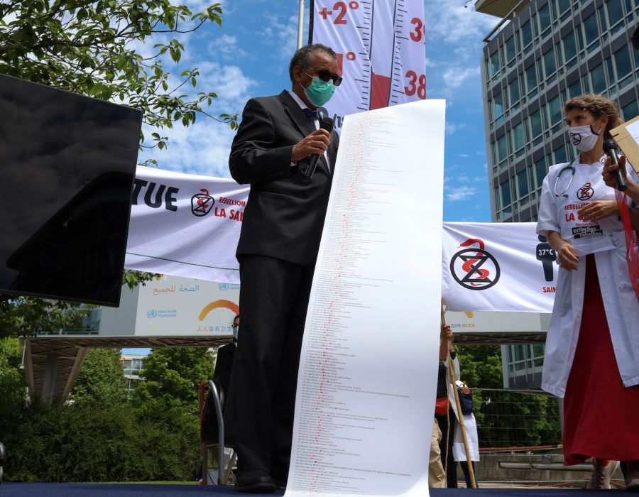 Plus d’un millier de professionnels de la santé ont signé un Appel international pour le climat. Il a été remis au directeur général de l’OMS, Tedros Adhanom Ghebreyesus, en main propre le samedi 29 mai, en marge de la 74e Assemblée mondiale de la santé à Genève. Quelque 200 manifestants s’étaient rendus sur place à cette occasion. Le texte demande que «les autorités sanitaires de chaque pays déclarent publiquement que le changement climatique met les gens en danger de mort» et «agissent maintenant pour préserver la vie». Car le changement climatique et la perte de la biodiversité est «le problème numéro un de santé publique». Rappelons que la pollution tue des millions de personnes par année. Pour les Doctors for XR, branche des professionnelles et des professionnels de la santé d'Extinction Rebellion (XR), les autorités sanitaires ont «la responsabilité d’obliger les gouvernements à respecter, au minimum, les accords de Paris».
