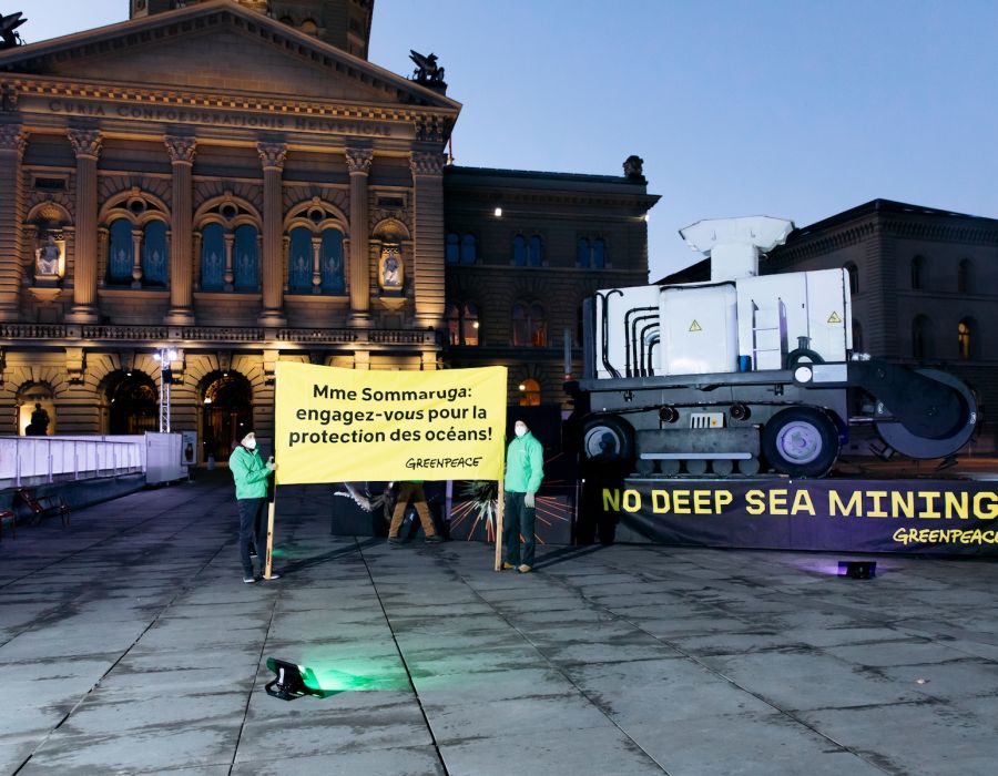 Scène étonnante le 9 février dernier sur la place Fédérale à Berne: avant même le lever du soleil, des militants de Greenpeace ont installé une fausse machine d’excavation en eaux profondes et des images grand format de la faune et des abysses marins. But de l’action: exiger du gouvernement un engagement concret en faveur de la protection des océans alors que des négociations finales sur le sujet se dérouleront à New York du 7 au 18 mars prochain. L’engin, amené par l’organisation écologique, d’une longueur de 6 mètres pour 5 de hauteur et 2,5 de large, et d’un poids de 4 tonnes, se voulait une réplique d’un des véritables monstres prévus dans l’extraction minière. Ce dernier, pesant pas moins de 400 tonnes et pouvant opérer à 4000 mètres de profondeur, sert à l’arrachement de nodules polymétalliques contenant entre autres du manganèse, du cobalt et du nickel: des matières premières utilisées dans le secteur de l’électronique. «Lancer une industrie extractive dans des écosystèmes jusqu’ici intacts entraînerait des conséquences catastrophiques pour la biodiversité des océans», a alerté Greenpeace dans un communiqué. Et l’ONG de souligner que, depuis quelques années déjà, de grands groupes de matières premières, dont des sociétés suisses, font pression sur l’Autorité internationale des fonds marins (ISA) afin d’obtenir l’autorisation d’exploiter les ressources des abysses. Selon l’ONG, l’ISA a donné son feu vert aux premières licences dès 2023.