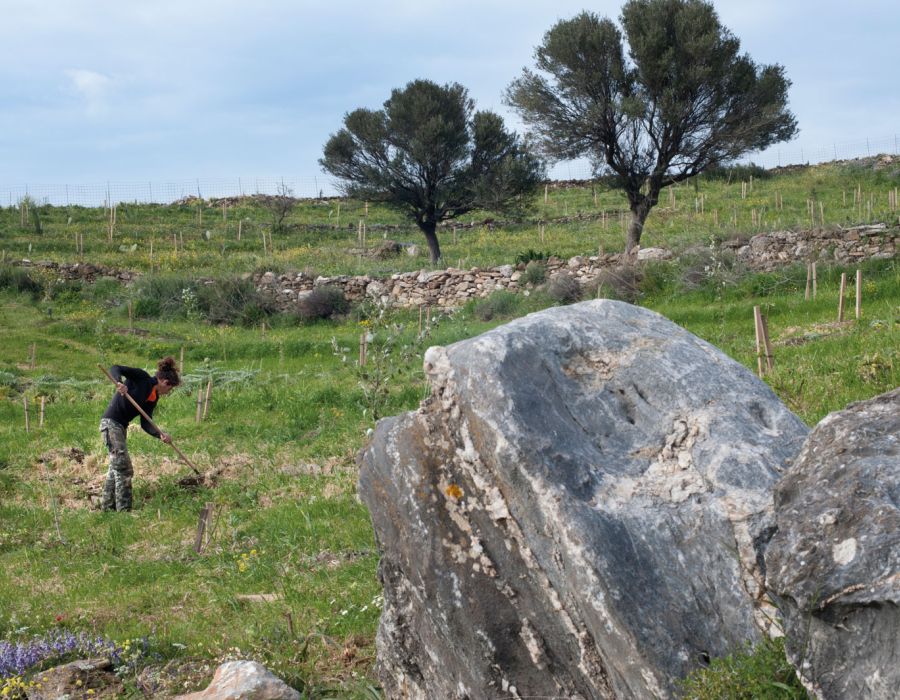 Avril 2019. Sur l’île grecque d’Eubée, Dimitri Tsitos, 25 ans, écrit l’histoire de 8000 arbres. Lui, son père, sa mère, sa sœur et un ami s’inspirent de la forêt pour régénérer le sol dégradé de leur terrain