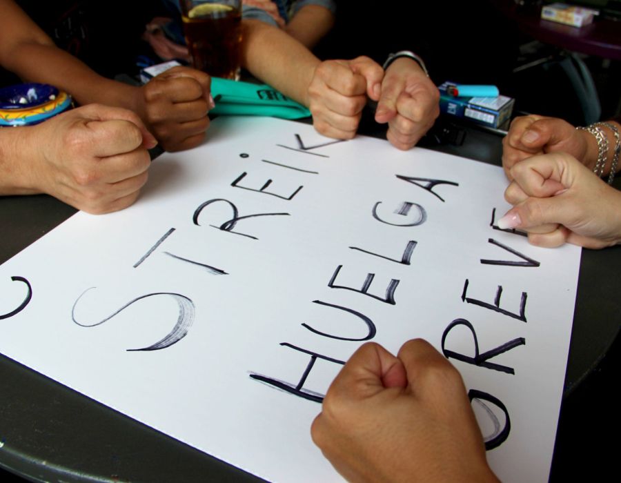 A Zurich, des femmes et un valet de chambre demandent à l’Hôtel Sheraton de leur proposer des contrats fixes afin de mettre fin à la précarité de leur emploi