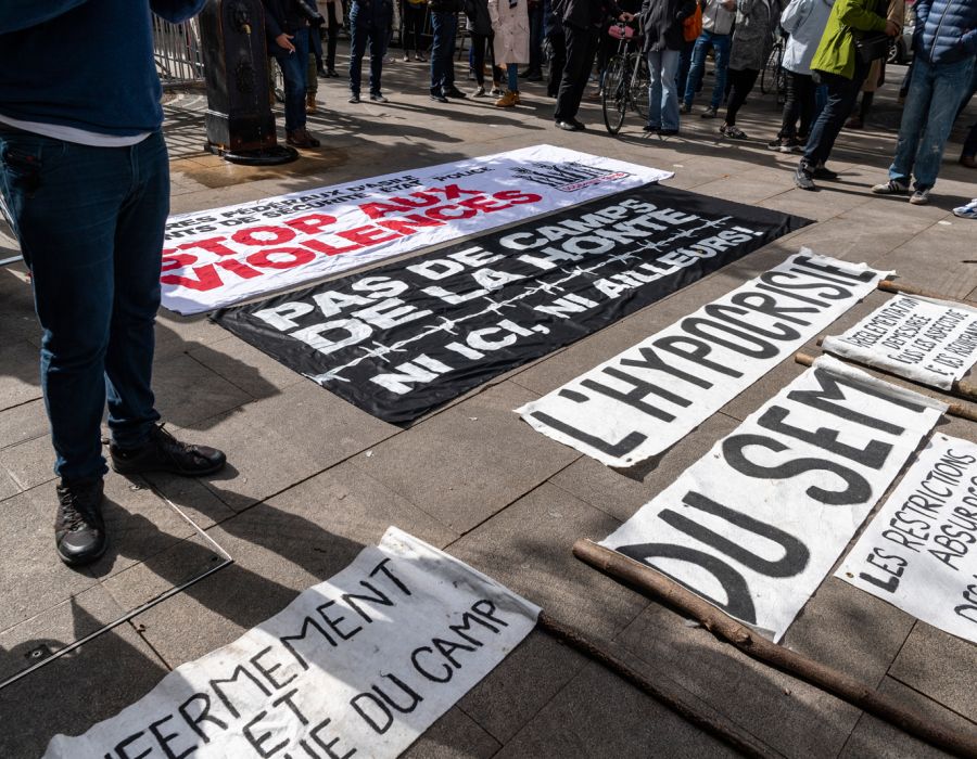 Banderole: Pas de camps de la honte. Ni ici, ni ailleurs!