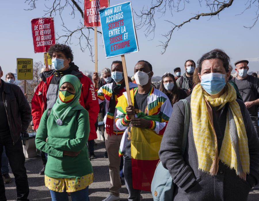 Plus de 300 personnes se sont mobilisées à Genève pour dénoncer les renvois forcés vers l’Ethiopie
