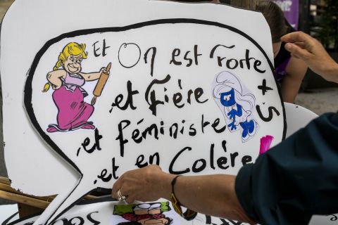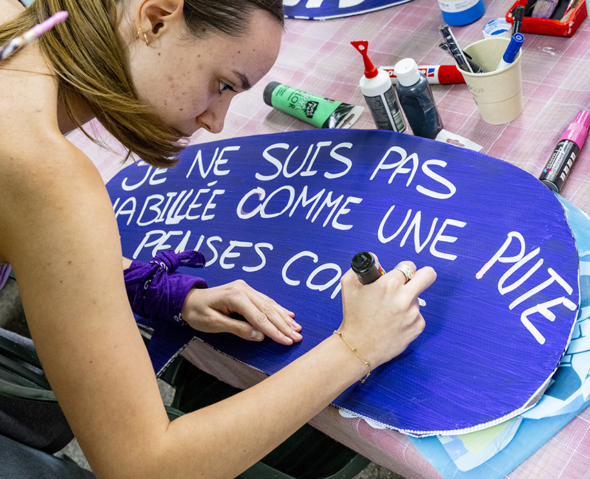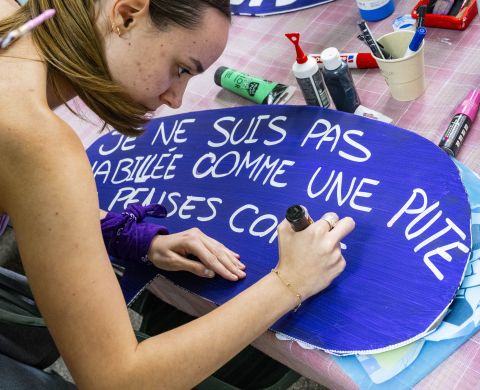 L’atelier a eu du succès, et les participantes étaient inspirées. «Même mon chien comprend quand je dis non», «Si le viol c'est du sexe, un coup de pelle dans ta gueule, c'est du jardinage?», «On ne naît pas femme mais on en meurt»: voilà certains des slogans qu'elles ont imaginés. Le cortège, qui a démarré à 17h, a réuni environ 250 personnes, un chiffre sur lequel les organisatrices et la police sont d'accord, une fois n'est pas coutume.
