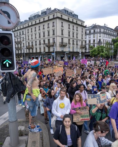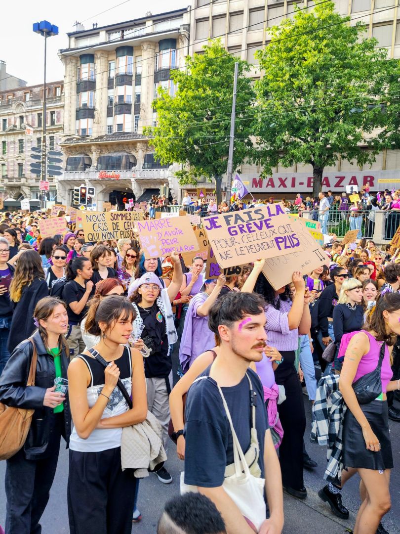 A Genève, le cortège a réuni plusieurs milliers de manifestantes dont, pour la première fois, des personnes à mobilité réduite et malentendantes, dans un souci d’inclusivité élargie. Les questions de l’égalité ont été déclinées au sens large, dans les sphères professionnelle et privée, entre iniquité salariale, sexisme, violence en tous genres, etc.