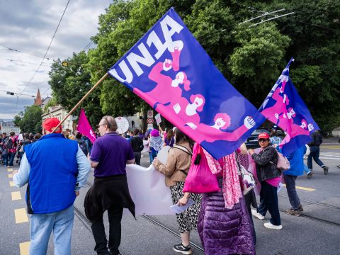 «C’est un scandale! s’est indignée Vania Alleva, présidente du syndicat Unia. Le harcèlement, les bas salaires, le manque de reconnaissance du travail de care non rémunéré ou la pauvreté des femmes dans la vieillesse sont les symptômes d’une société qui dévalorise systématiquement les femmes et leur travail. On fait comprendre aux femmes que leur travail a moins de valeur. Au lieu d’augmenter enfin les salaires et de soutenir les salaires minimums régionaux, le camp bourgeois s’en prend aux rentes des caisses de pension avec l’arnaque de la réforme de la LPP.»