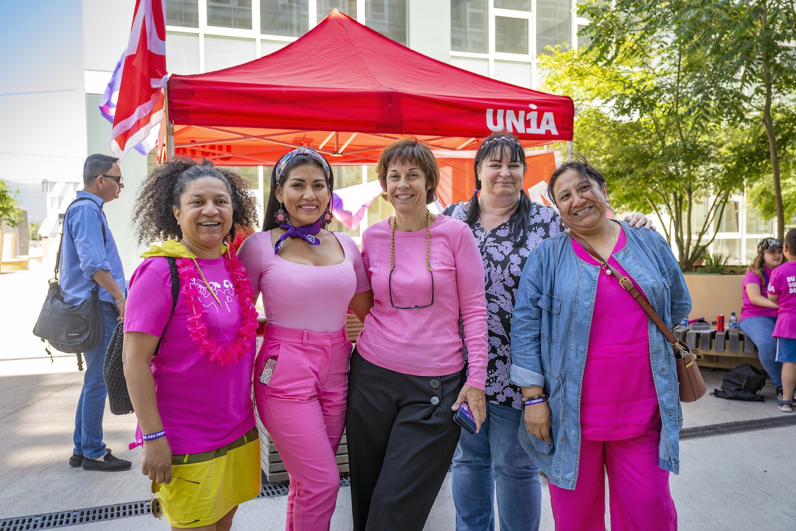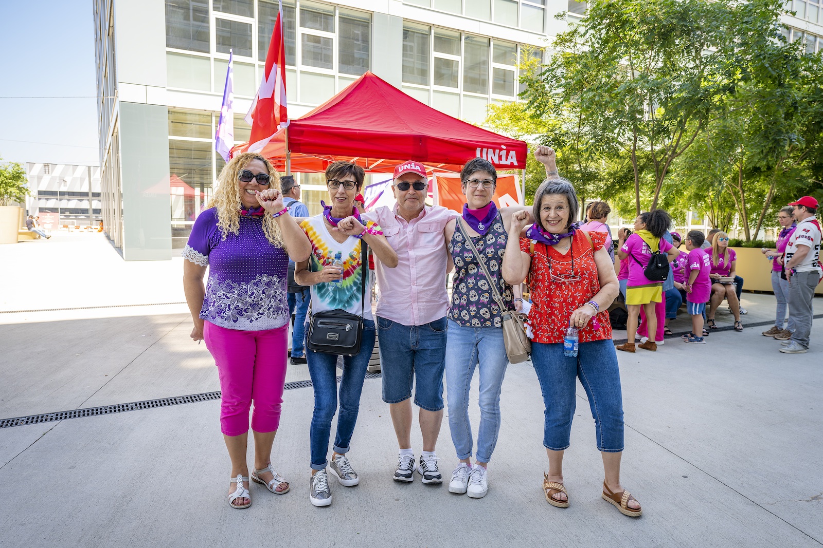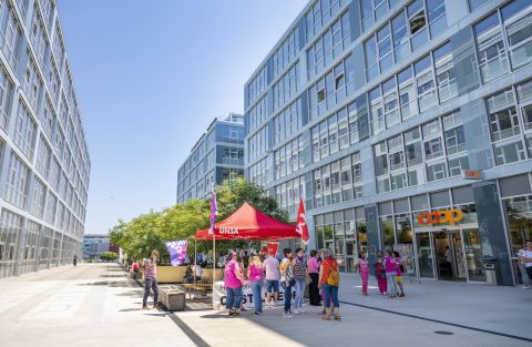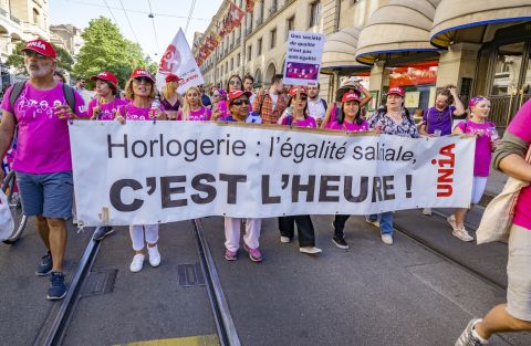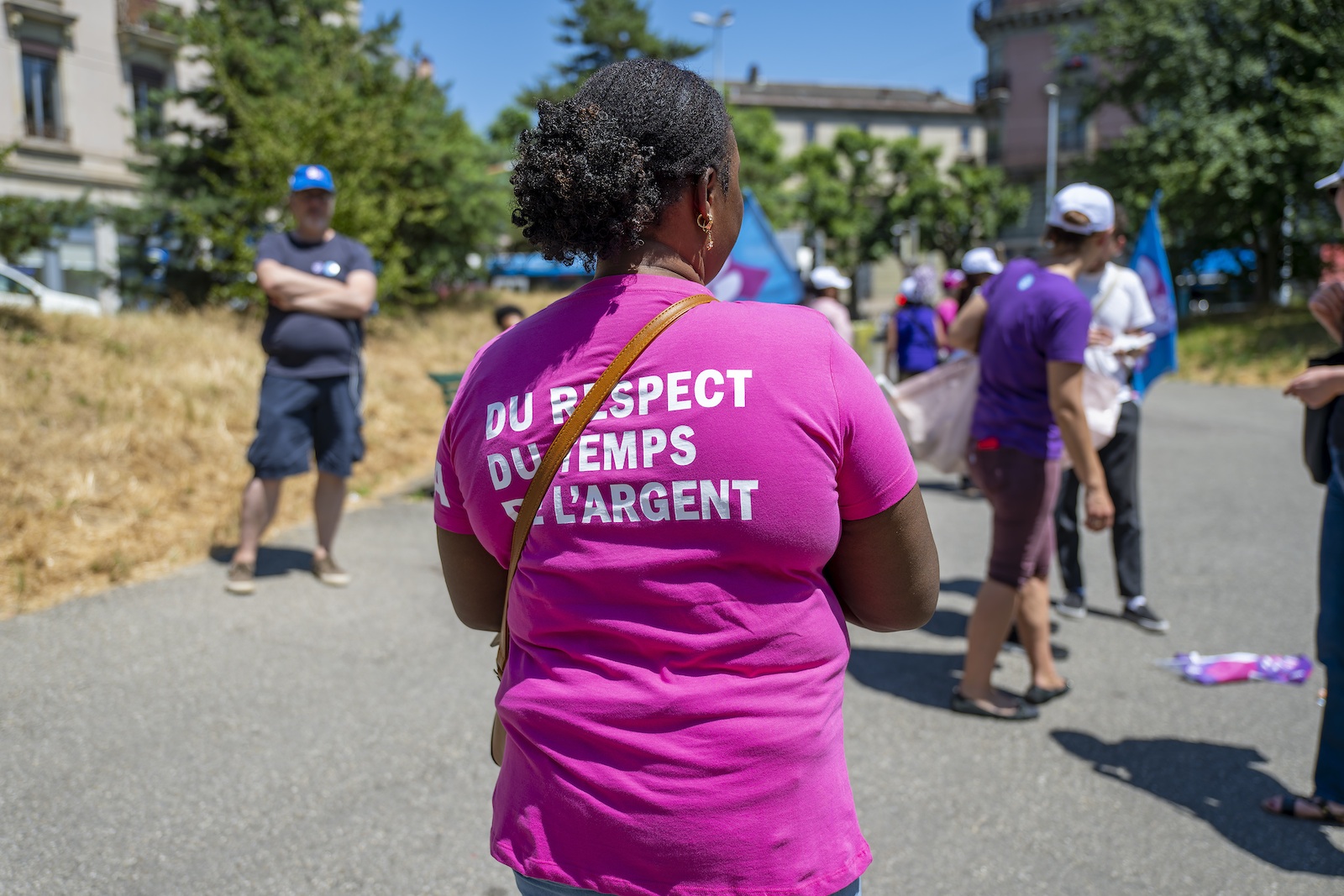 L’Evénement syndical s’est d’abord rendu à Plan-les-Ouates, au cœur des entreprises horlogères, où Unia organisait un pique-nique. Une vingtaine de militantes s’y sont retrouvées le temps de leur pause de midi, arborant le rose ou le violet (lire ci-dessous). Alors que la convention collective est en renégociation, la branche doit faire face à l’explosion du travail temporaire et à de forts écarts de salaire, avec une volonté patronale de flexibiliser les horaires de travail. Plusieurs revendications féministes sont à l’ordre du jour, dont la lutte contre le harcèlement, un meilleur accès aux fonctions dirigeantes et la création d’un congé parental propre au secteur.