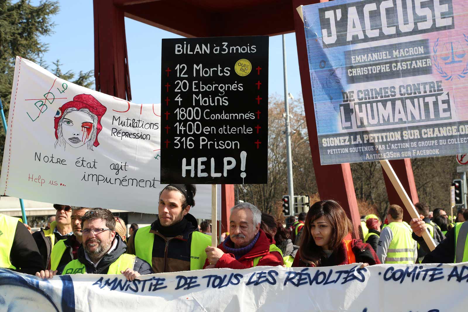 Avec leurs homologues suisses, ils appellent à cette nouvelle mobilisation entre Ferney et Genève pour dire stop à ces violences et exiger l’arrêt définitif de l’utilisation des armes de guerre, parmi lesquelles le LBD40, produit à Thoune. Des centaines de personnes ont été gravement mutilées ou blessées depuis le début du mouvement le 17 novembre 2018 et des milliers arrêtées et condamnées.