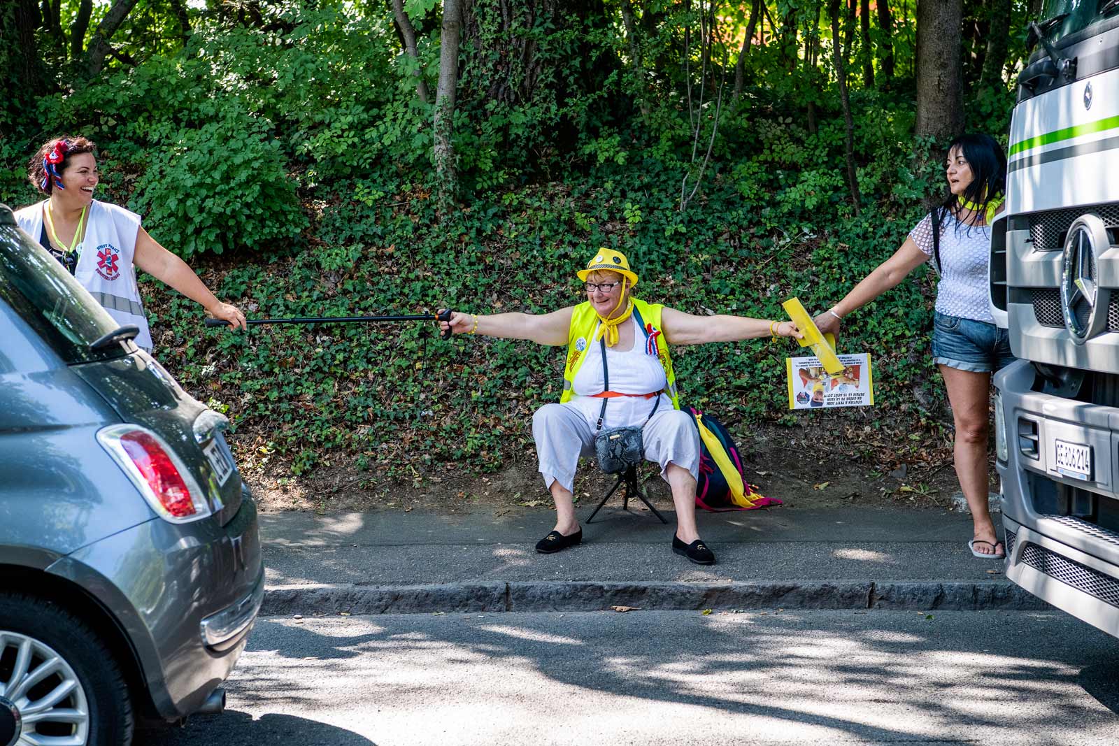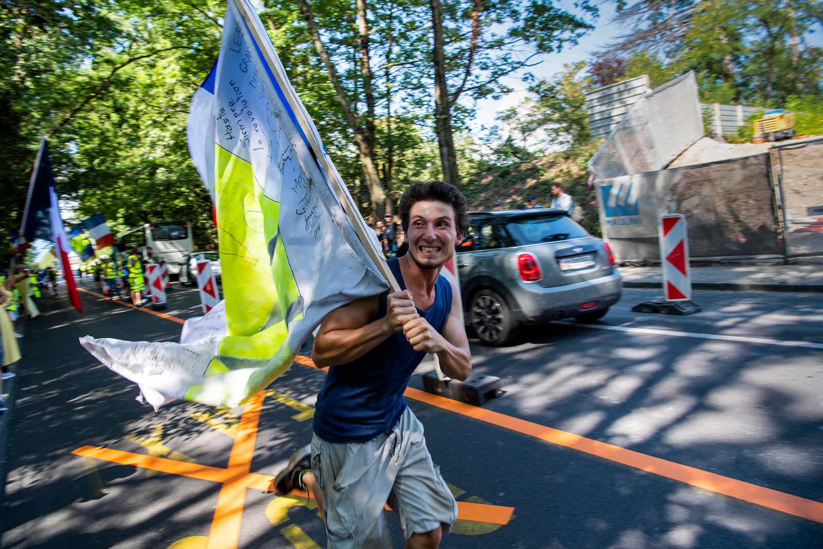 Une chaîne humaine par-dessus la frontière. Les Gilets jaunes sont revenus à Genève samedi dernier pour dénoncer, après un premier rassemblement en février, la violence policière du gouvernement Macron. Partis de France voisine et de la place des Nations, ils se sont déployés le long de la route cantonale. Un millier de manifestants se sont ensuite retrouvés devant le bâtiment de l’ONU, où la longue liste des victimes depuis le début du mouvement a été énoncée: 5 personnes ont perdu une main, 24 un œil, 3000 ont été blessées à la tête, touchées notamment par les tristement célèbres LBD40, lanceurs de balles de défense fabriqués en Suisse et dont les Gilets jaunes demandent l’interdiction, au même titre que d’autres armes de guerre utilisées par les forces de l’ordre. Un dossier étoffé sur cette répression a été adressé à la directrice de l’ONU et au HCR.