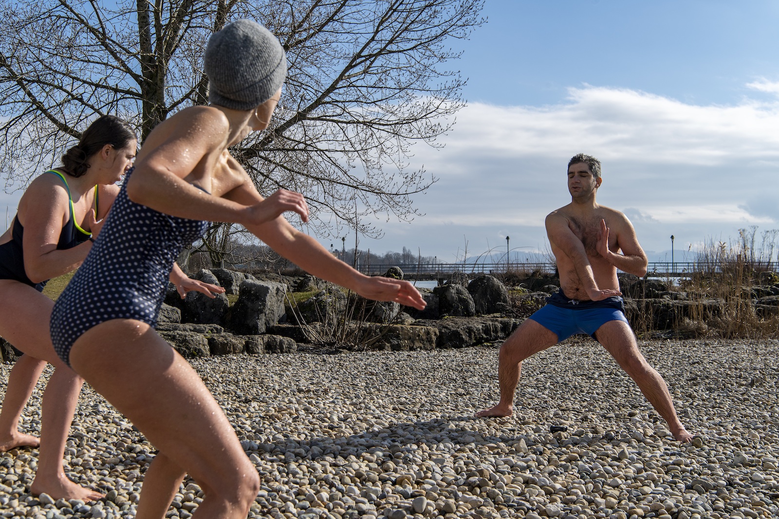 Arianne, 73 ans - Je viens tous les deux ou trois jours, en fonction du temps. C’est mon premier hiver et, pour m’y mettre, j’ai simplement continué à me baigner en automne. Je porte des chaussons de planche à voile, un bonnet et un haut qui retient un peu l’eau. Le sentiment que cela procure est impressionnant: je me sens comme dans une bulle. Après, je suis beaucoup plus tonique, j’ai plus de force pour entreprendre des choses. Et je me suis rendu compte que ça renforce mes défenses immunitaires.