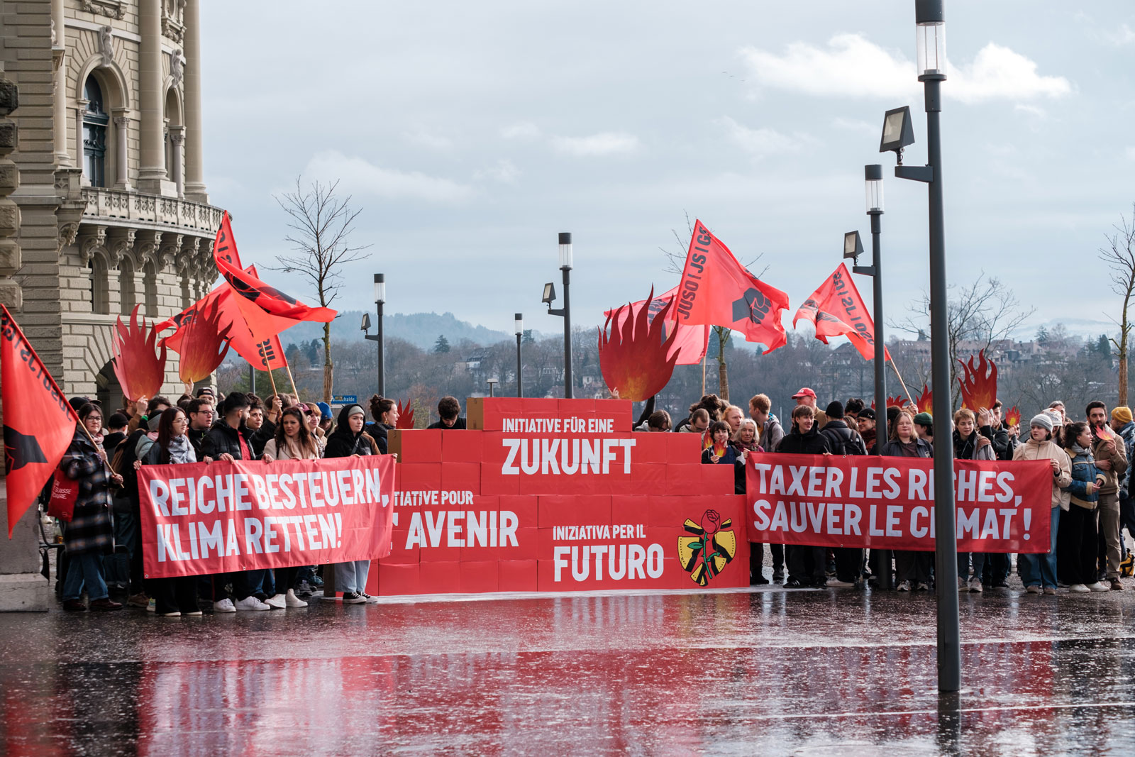La Jeunesse socialiste a déposé le 8 février, à Berne, son initiative populaire fédérale «pour une politique climatique sociale financée de manière juste fiscalement», dite initiative pour l’avenir. Soutenue par les partis de gauche et forte de plus de 140000 signatures, l’initiative demande l’introduction d’un impôt de 50% sur les successions supérieures à 50 millions de francs. Deux mille personnes environ possèdent une telle fortune, soit 0,035% des personnes imposables en Suisse. Le produit de cette taxe, qui, selon les calculs de la Jeunesse socialiste, rapporterait quelque 6 milliards de francs par an, reviendrait pour deux tiers à la Confédération et pour un tiers aux cantons. Il servirait, comme le stipule le texte, à «soutenir la transformation écologique et socialement juste de l’ensemble de l’économie, en particulier dans les domaines du travail, du logement et des services publics». On pense à la formation facilitant les reconversions dans certaines branches, l’isolation des bâtiments ou encore le développement des énergies renouvelables et des transports publics.