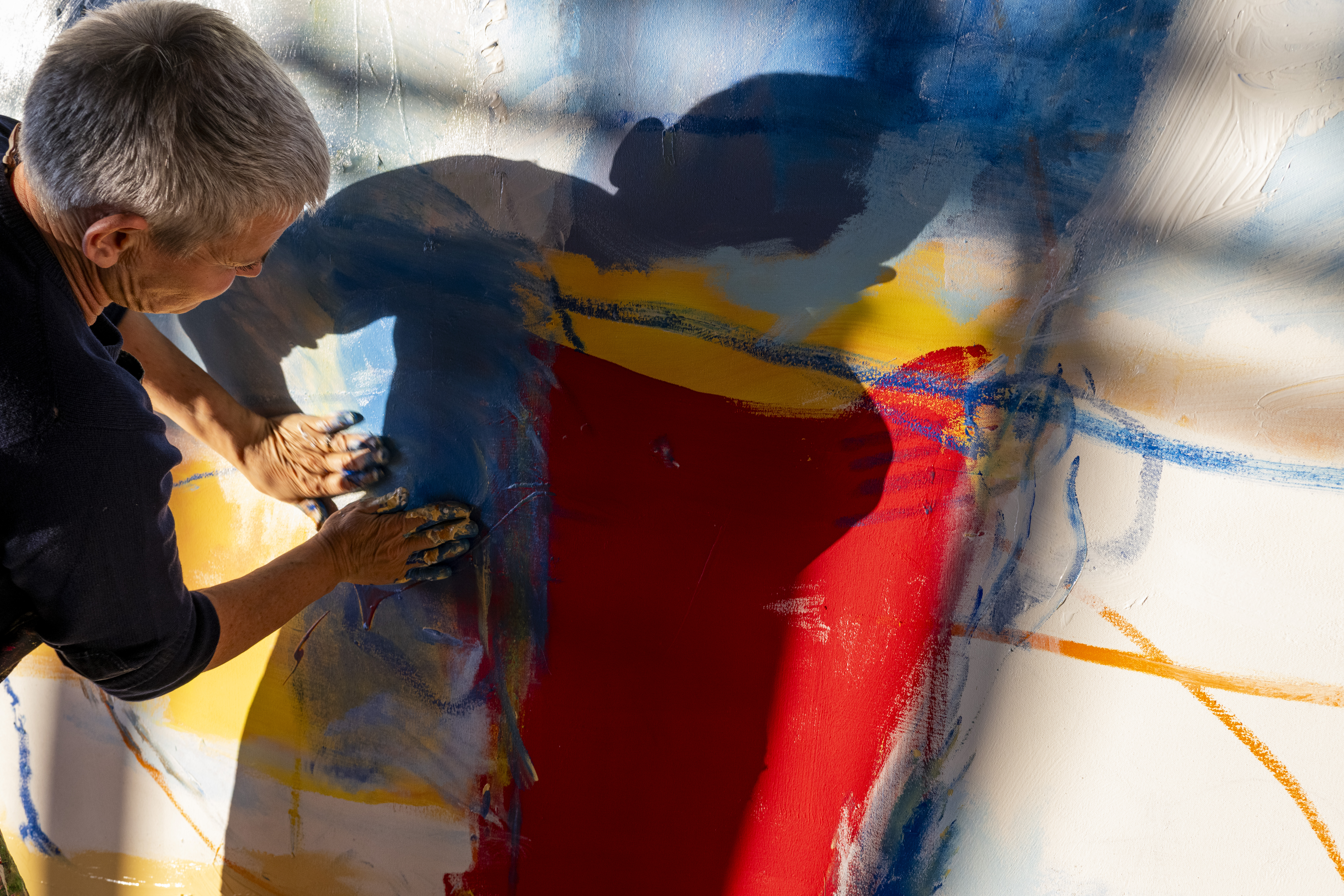 L’artiste Andrea Dora Wolfskämpf applique la couleur comme une plâtrière-peintre. A la différence qu’elle n’utilise pas de spatule, c’est une relation organique, sensuelle avec le tableau.