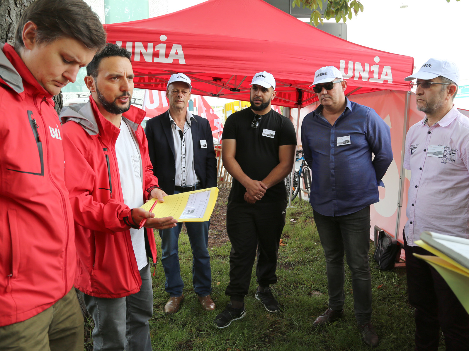 Des représentants d’Unia ont dénoncé les conditions de travail des chauffeurs grévistes relevant que, pour un salaire net compris entre 1500 et 2500 francs, ils devaient souvent travailler plus que les 45 heures hebdomadaires autorisées.