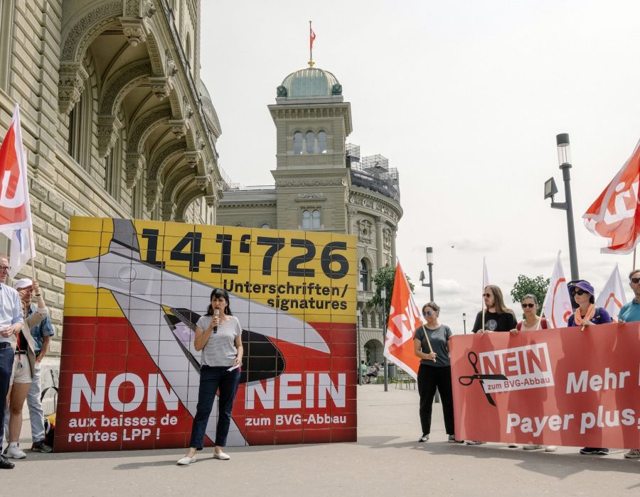 Les représentants de l’alliance «Non aux baisses des rentes LPP» avaient déposé l'été dernier presque trois fois plus de signatures que nécessaire à la Chancellerie fédérale à Berne.