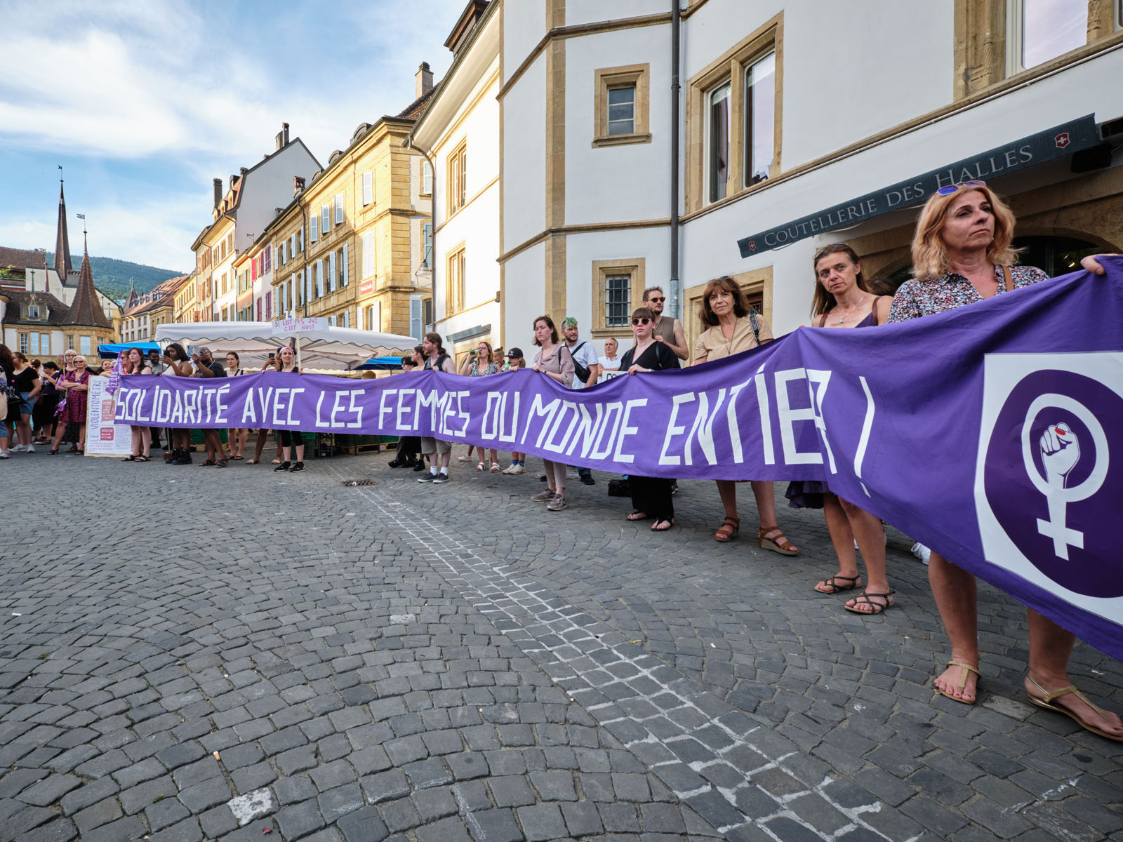La solidarité féministe au-delà des frontières s’est aussi exprimée durant la manifestation du 14 juin à Neuchâtel.
