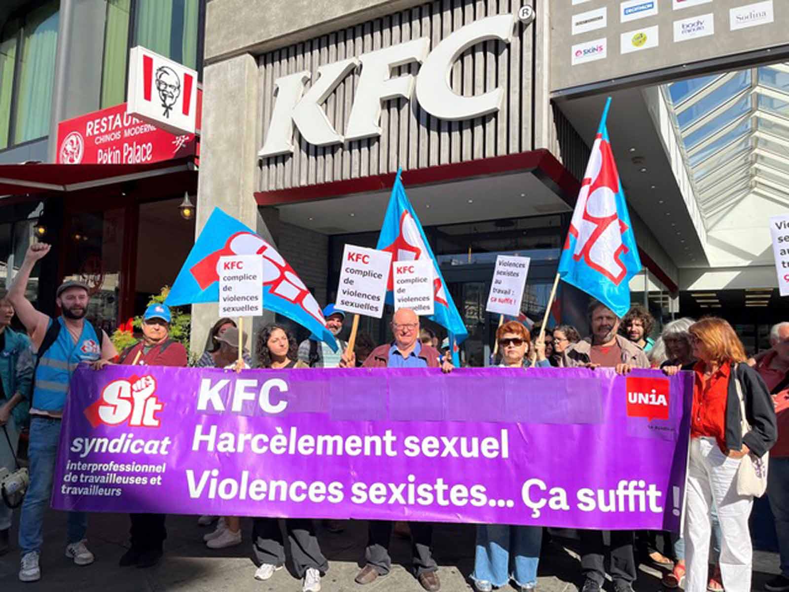 Soutenu par Unia, le syndicat Sit a mené une action le 11 octobre devant un KFC genevois pour dénoncer des violences sexistes et sexuelles de la part d’un responsable de la chaîne de restauration rapide spécialisée dans le poulet frit.