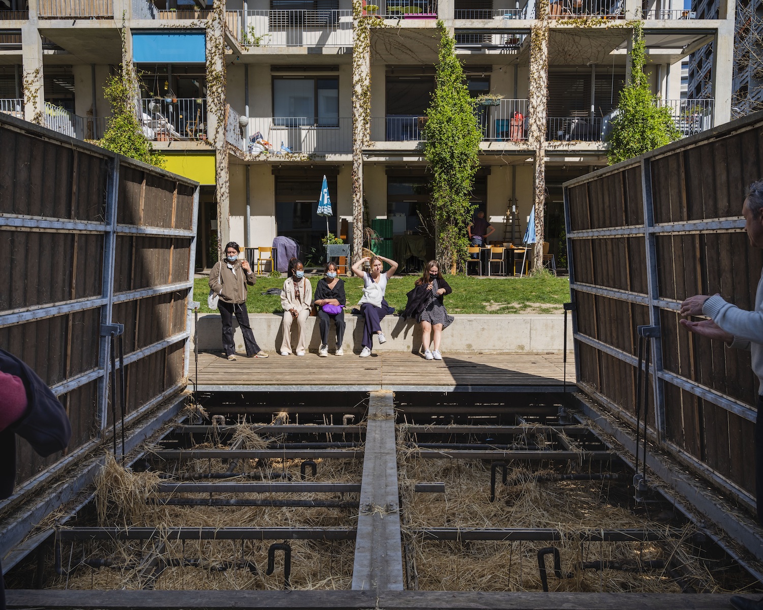 Après un tour dans les cuves de compostage – un fumier au milieu de la ville en somme – des toilettes expérimentales et un pique-nique, il est déjà temps de rejoindre l’écoquartier de Meyrin, les Vergers. Equilibre y compte trois bâtiments sur 30 immeubles, 65 logements sur 1200. La réflexion se fait ici en collaboration avec les autres coopératives – La Codha, Voisinage, les Ailes, Polygones, la Ciguë – et les autres promoteurs. «Ici, nous créons une filière alimentaire unique, avec une coopérative agricole, des artisans transformateurs et un supermarché, la Fève, pour la distribution. Nous travaillons aussi à la mise en place d’un système de santé plus proche des gens, axé davantage sur la prévention», explique Benoît Molineaux. «On essaie d’être le plus cohérent possible, mais les compromis font aussi partie de la résilience. On relève le défi de vivre ensemble. On apprend, peu à peu. Avec aussi parfois des formations de communication non violente et de la médiation.» La mixité, elle, reste encore un grand défi. Et ce malgré des appartements dévolus à des personnes migrantes, dont les parts sociales sont prises en charge par la coopérative.