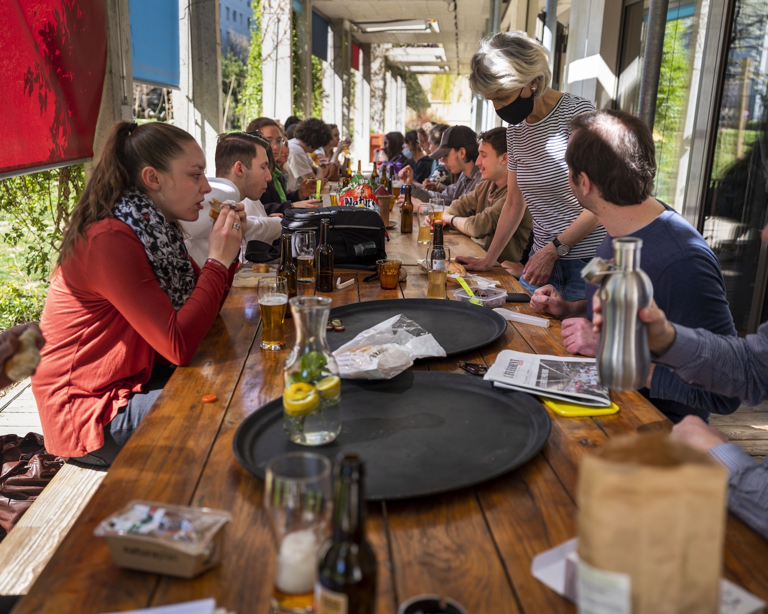 Petite pause dans ce voyage alternatif au cœur de Genève pour la classe de gymnasiens venue de Morges. © Olivier Vogelsang