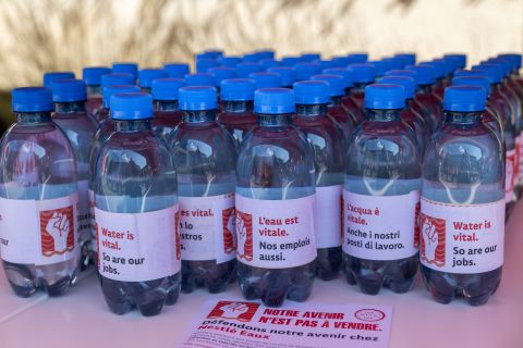 Cette décision suscite des craintes quant à l’avenir des sites de production et des emplois qui y sont rattachés. «L’expérience nous montre que les partenariats ou cessions opérés par Nestlé se traduisent trop souvent par des fermetures d’usines, des suppressions d’emplois et la remise en cause de droits sociaux acquis», dénonce le flyer distribué aux passants. Des bouteilles d’eau leur sont aussi offertes, avec une étiquette arborant le slogan: «L’eau est vitale, nos emplois aussi.»