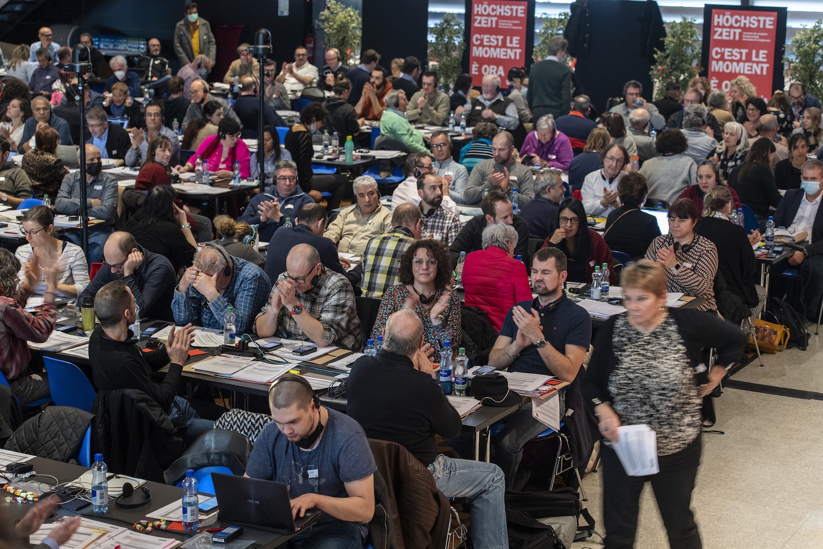 Enfin réunis! Les deux premiers jours du 4e congrès ordinaire d’Unia s’étaient déroulés en juin 2021 en visioconférence, Covid oblige. Pour sa troisième journée, le Palais des congrès de Bienne a accueilli les 206 déléguées et délégués des régions d’Unia et des groupes d’intérêts. Une salle attentive, et de nombreuses interventions à la clé.