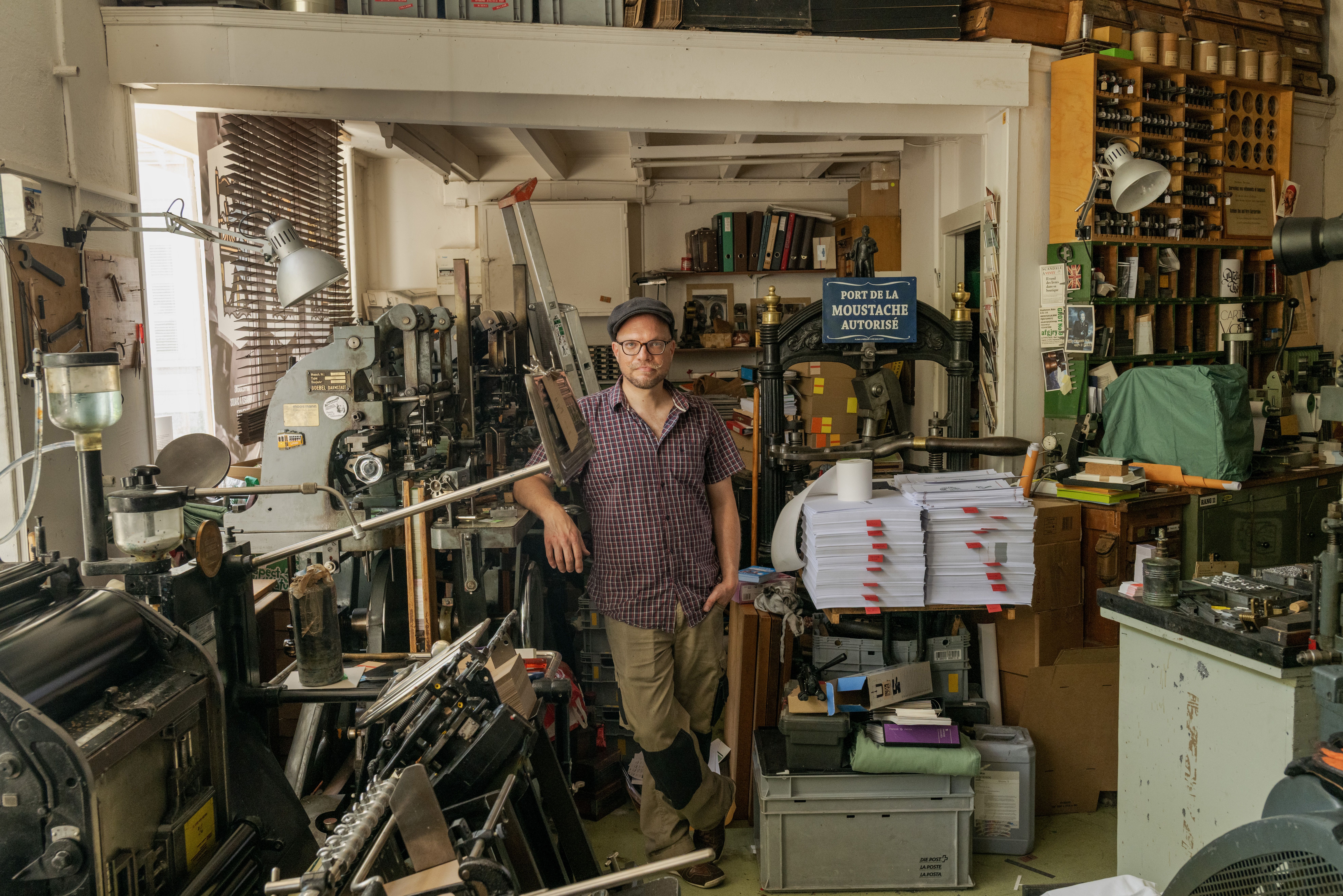 Ses machines ancestrales – la plus ancienne est une presse à bras de 1824 – sont les véritables maîtresses des lieux, dont elles occupent en grande partie l’espace physique et sonore. D’ailleurs, chacune porte un prénom. Il y a là Yvonne, Albert, Edwige, Maximilien, Marthe et d’autres. «Comme ça, quand elles ne marchent pas bien, on peut les enguirlander. Ça évite une séance de psy!» rigole l’artisan.
