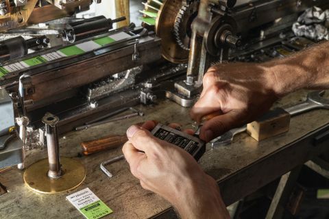 Cet ouvrier au look aussi anachronique que son métier, qui arbore une moustache en guidon et une casquette gavroche perpétuellement vissée sur le crâne, s’est donné pour mission de maintenir en vie un savoir-faire en voie d’extinction. Mais malgré la dimension mémorielle et pédagogique de son travail, à travers les démonstrations et les journées portes ouvertes qu'il organise, ainsi que les stagiaires qu’il accueille régulièrement, son atelier est loin d'être un musée. Son carnet de commandes n’a rien de fictif.