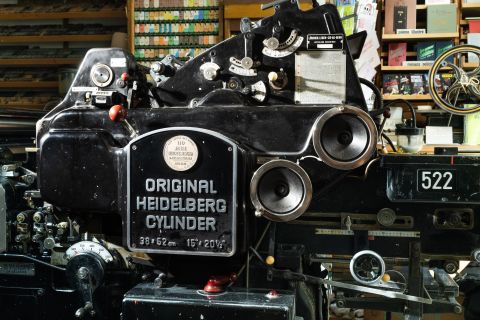 Le jour de notre passage, Nicolas Regamey s’affaire à imprimer des cartes de visite en carton gris-brun. «La cliente voulait des cartes très épaisses, mais cela passe mal dans les machines modernes.» Il y a d'autres sortes de travaux que seules d’anciennes presses permettent de réaliser, comme le gaufrage, le timbrage à chaud avec des dorures ou la découpe. Son slogan: «L’impression artisanale, la seule IA qui donne une âme à vos imprimés.» Toutefois, il souligne que son activité est complémentaire aux technologies plus récentes. «Près d'ici, il y a une imprimerie numérique, avec laquelle on s’envoie des clients réciproquement. Il y a des choses qu’eux peuvent faire et pas moi, et vice-versa. Il y a aussi des petits boulots que les autres imprimeries ne veulent plus prendre, car ce n’est pas rentable.»