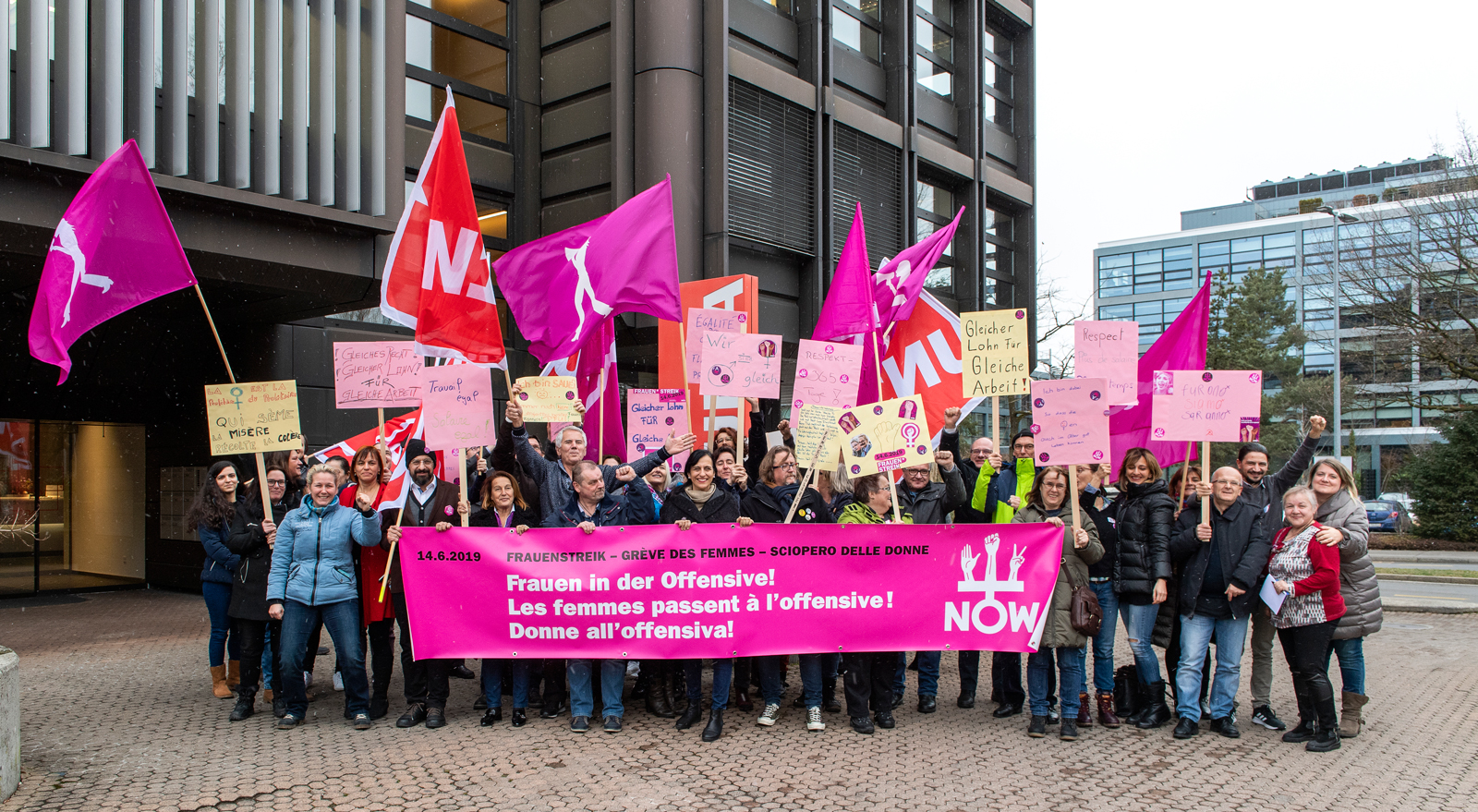 En avant vers la grève des femmes du 14 juin 2019! Les derniers chiffres de l’Office fédéral de la statistique n’étaient pas encore connus, mais les délégués du tertiaire réunis à Berne le 28 janvier ont clairement affiché leur détermination à en finir avec les inégalités salariales. Avant de débattre de la grève, et de préparer des pancartes pour la photo du jour, derrière une banderole affichant «Les femmes passent à l’offensive», la soixantaine de délégués ont passé en revue les activités du secteur en 2018, ce dernier regroupant le quart des membres d’Unia, dans des branches très féminines telles que l’hôtellerie, la vente ou les soins. 2018 a été une année de luttes, notamment avec la fermeture d’OVS, plus grand licenciement dans le commerce de détail du pays; des grèves, au Cern ou chez Uber; et des avancées telles que l’entrée en vigueur de la nouvelle CCT obligatoire pour les shops de stations-service.