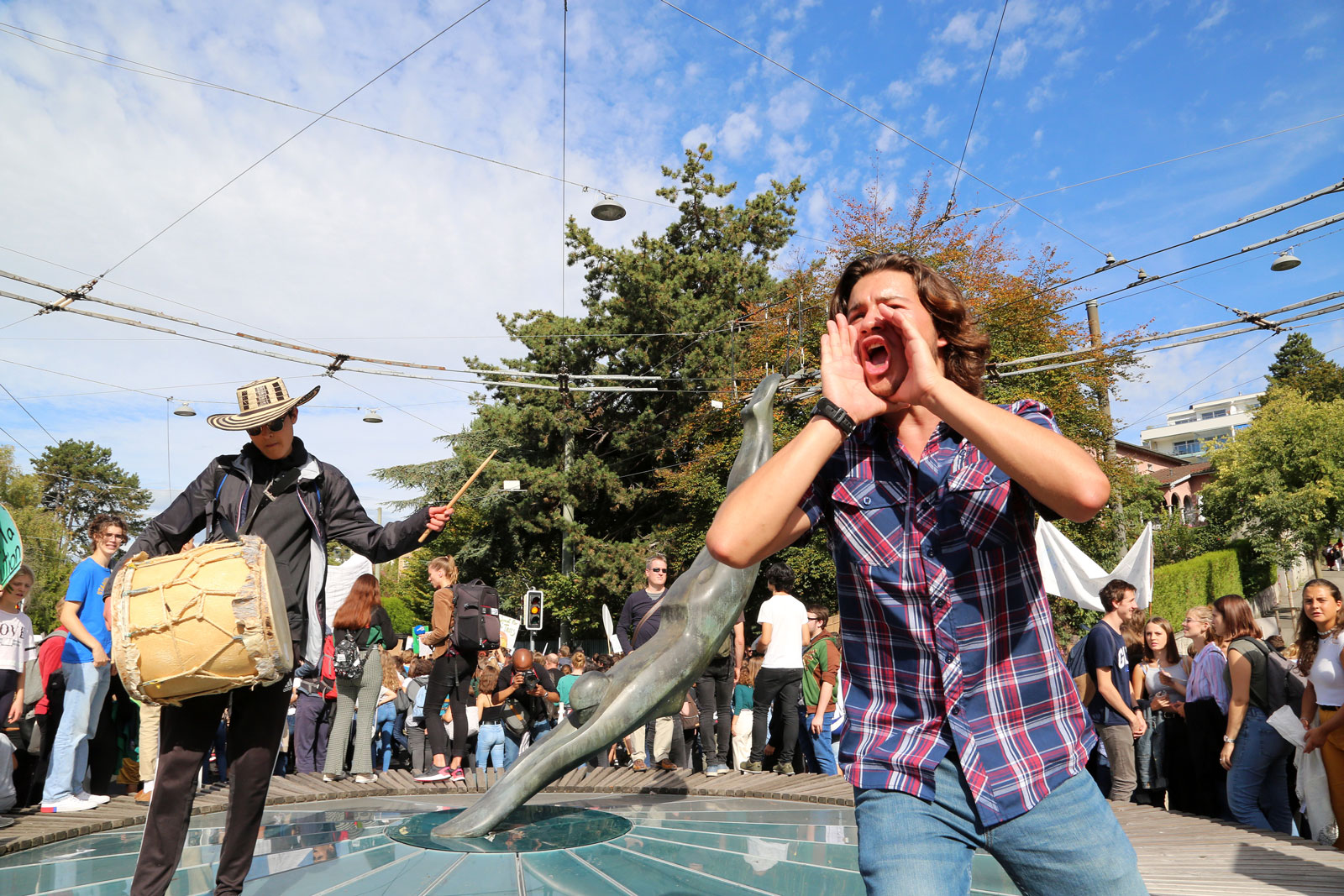 «Bienvenue à cette journée forte en événements.» C’est ainsi que Micaël Metry, de l’action unitaire «Place à l’Alternative » (qui regroupe plusieurs collectifs de la région lausannoise dont le Jardin aux 1000 mains et Chailly 2030) donne le ton de la journée du vendredi 27 septembre, veille de la grande manifestation nationale pour le climat. A Lausanne, sur la colline du parc de Milan, vue sur le lac, devant quelques journalistes, des membres de la Grève du climat, d’Extinction Rebellion et de la Grève féministe sont présents pour expliquer les buts de l’action de blocage prévu sur trois ponts après la manifestation des étudiants. Leur demande: la neutralité carbone d’ici 2025, le désinvestissement des énergies fossiles, la mise sur pied d’assemblées citoyennes.