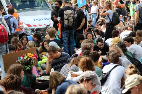 La police avance et commence à déplacer des manifestants, pacifiques mais refusant de se lever. Des slogans fusent: «Non violent, non violent!», «Policiers, doucement, on fait ça pour vos enfants!» Suivis par des moments de silence de mort. Frappants. Créatives et résolument pacifiques, les méthodes d’action et de sensibilisation sont larges. Guillaume souligne aussi «la culture de bienveillance» du mouvement, y compris envers les policiers qui font leur travail, mais sont aussi des citoyens et des parents.