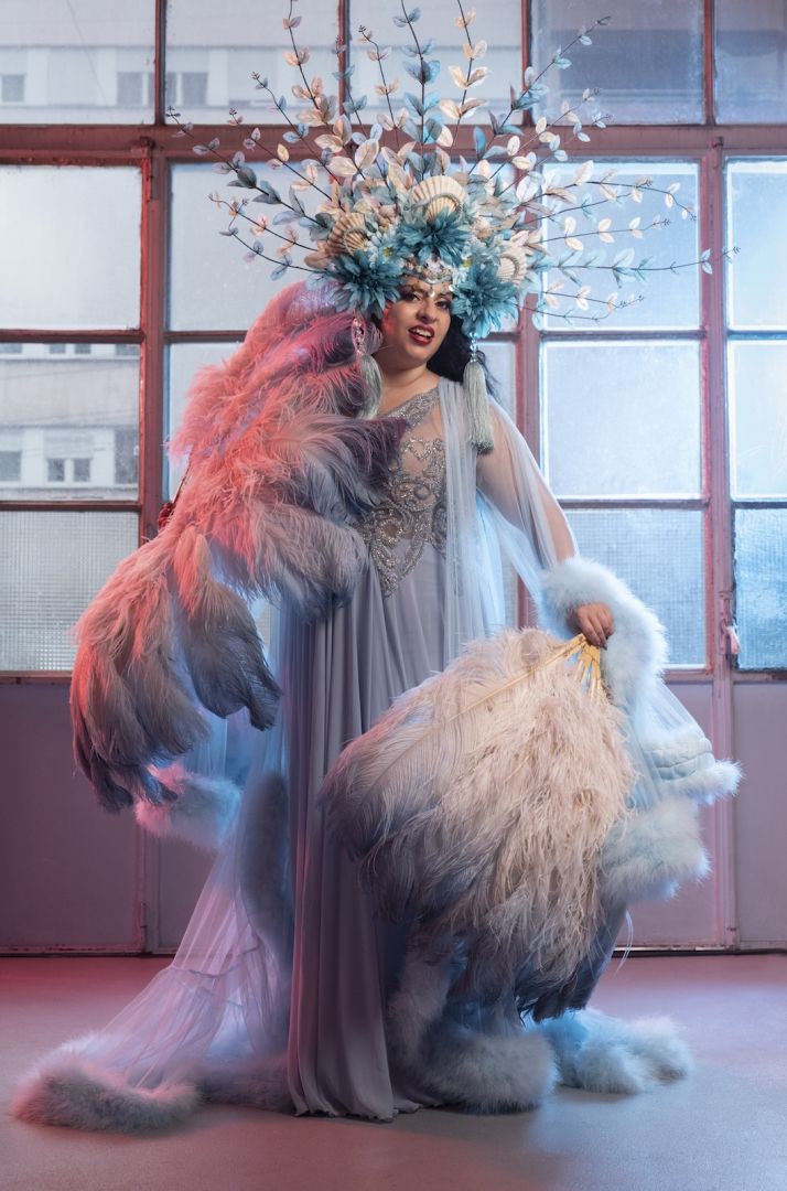 «Quand je me produis, je suis complètement moi-même», affirme Misty Lotus, dans un de ses flamboyants costumes de scène.