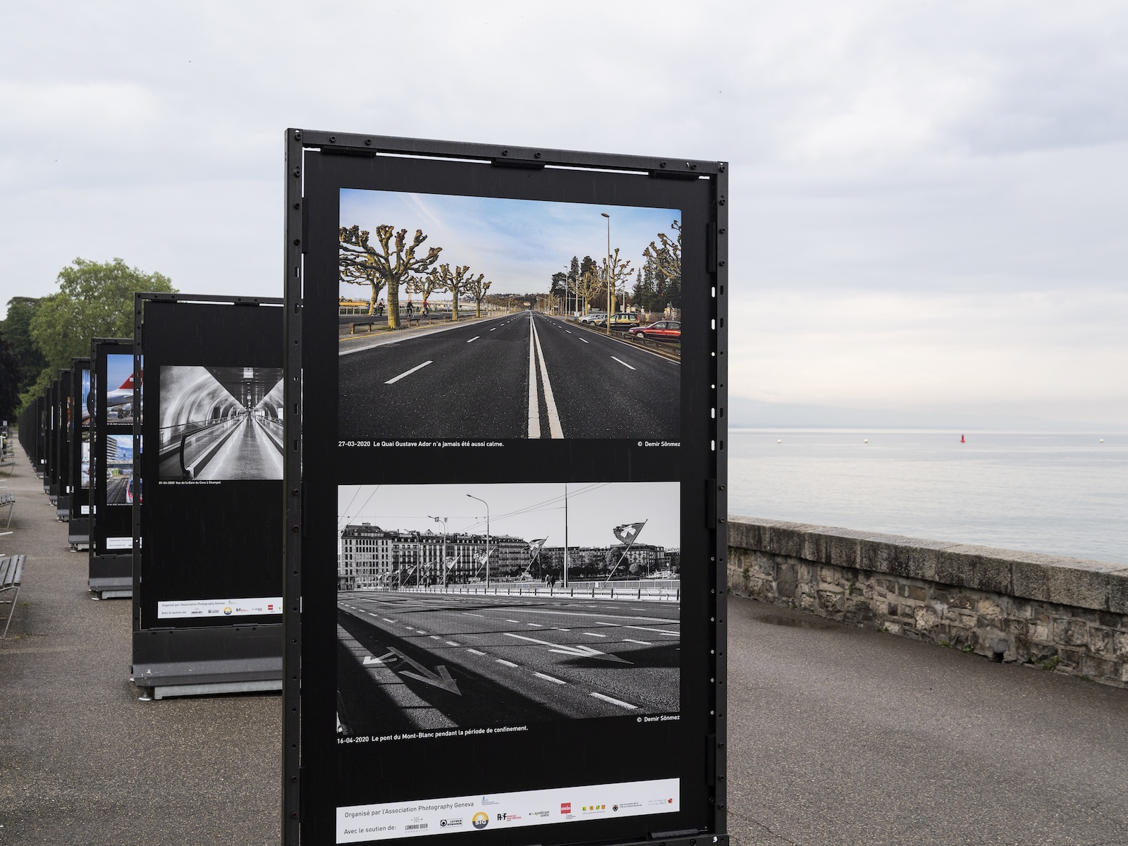 Genève confinée, désertée, apeurée... Dès le début du confinement, Demir Sönmez a sillonné les rues, immortalisant Genève métamorphosée en ville morte. Ce photojournaliste d’origine arméno-kurde est bien connu au bout du lac, on le croise dans toutes les manifs, son gros appareil en bandoulière et un éternel sourire aux lèvres. Il a publié l’été dernier Genève confinée. Témoignage sur une période historique (Editions Slatkine), écrit avec le journaliste Christian Vellas. Son exposition en plein air, «Genève confinée, la lutte continue et tout ira très bien», revient sur ce moment. En déambulant le long de la trentaine de grands panneaux posés sur le quai Wilson, on y voit, après le premier confinement, Genève ressuscitant, lorsque les salariés, qui font finalement vivre la cité, reprennent le chemin du travail. Des employés des TPG distribuent des masques et désinfectent minutieusement les véhicules, tandis qu’à l’entrée d’un restaurant, une serveuse coiffée d’une visière attend les clients en souriant. Les commerces non essentiels sont de nouveau ouverts, on peut enfin se rendre chez le coiffeur ou au bar à ongles. Mais des travailleurs précaires se sont retrouvés dans la misère, ils sont obligés de patienter durant des heures pour récupérer un sac de commissions à la patinoire des Vernets. En 2020 toujours, le 1er Mai, les syndicats déploient une grande banderole sur le pont du Mont-Blanc: «Face au coronavirus, protégeons les travailleurs et les travailleuses, nos salaires et notre santé valent plus que leur profit!» Et les employés de la fonction publique manifestent parce que le Conseil d’Etat entend opérer une coupe linéaire de 1% des rémunérations. «Applaudis pendant le confinement, remerciés par une baisse de salaire», dit une pancarte. L’accrochage restitue de multiples facettes de cette période et offre, entre les Bains des Pâquis et la Perle du Lac, un bon but de promenade.