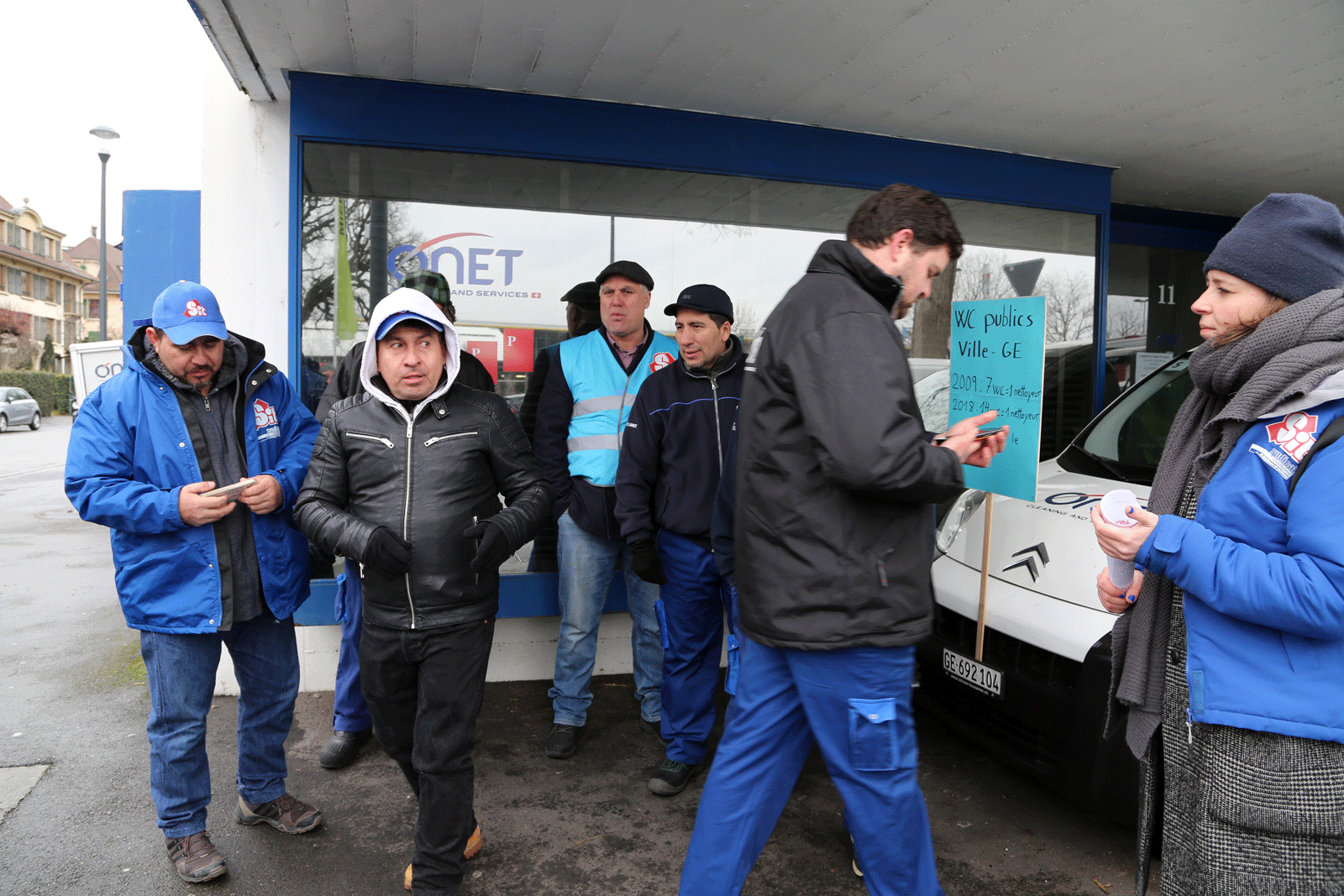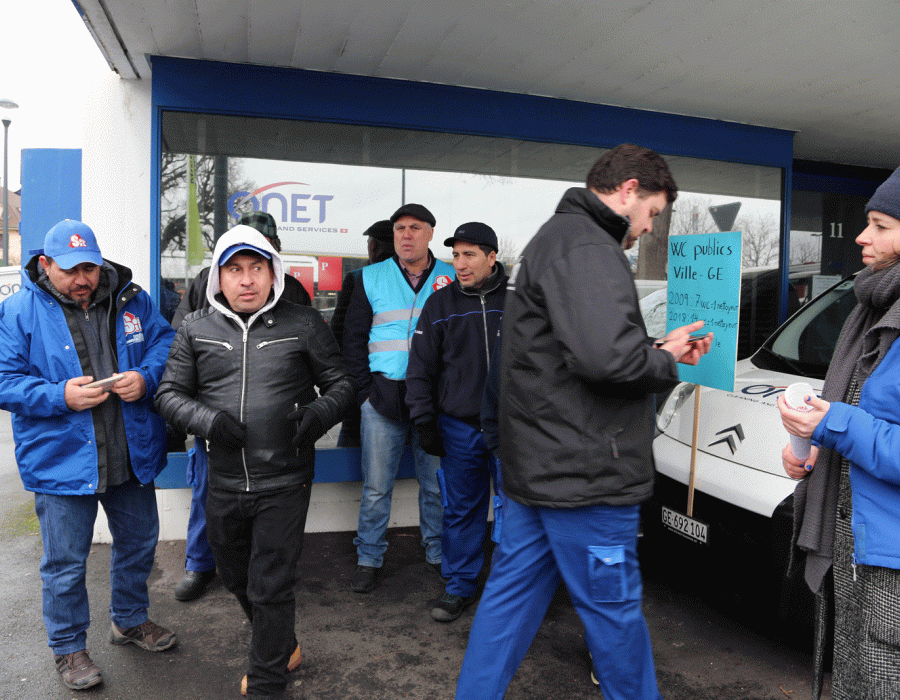 Soutenus par le syndicat Sit, les quinze travailleurs d’Onet SA chargés de l’entretien des WC publics de la ville de Genève ont poursuivi, tout le long de la semaine dernière, leur grève entamée le 11 février. Après deux jours de piquet de grève devant le siège de la société à Carouge, ils ont profité d’une séance du Conseil administratif pour l’interpeller en manifestant devant le Palais Eynard. Alors que le magistrat en charge du dossier, le démocrate-chrétien Guillaume Barazzone, avait fait savoir qu’il était opposé à une intervention de la commune dans le conflit, les grévistes ont obtenu, de la majorité de gauche de l’exécutif municipal, l’organisation d’une réunion tripartite rassemblant les représentants de la ville, de l’entreprise et du personnel le lundi 18 février dans l’après-midi. A l’heure de mettre sous presse ce journal, l’issue de cette rencontre n’était pas connue. «Nous attendons beaucoup de ce rendez-vous, nous espérons que la ville va prendre ses responsabilités, nous confiait auparavant Merita Elezi, responsable de la branche nettoyage du Sit. Si les discussions n’aboutissent pas, la grève pourrait se poursuivre, ce sont les grévistes qui décideront. Leur moral est bon. Ils sont ultra solidaires entre eux et n’ont pas renoncé à exiger la réintégration de leur collègue licencié.»