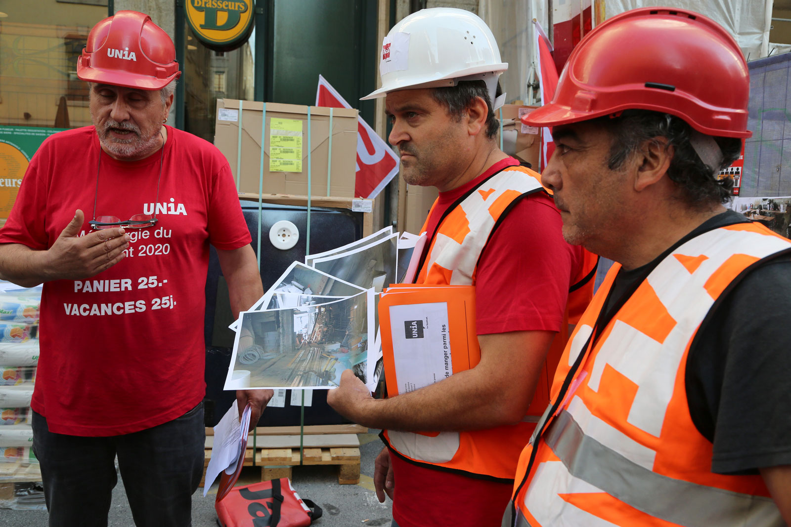 «Nous bloquons ce chantier pour protéger la santé et la sécurité des travailleurs», a expliqué peu après José Sebastiao, le responsable du secteur construction d’Unia Genève, au cours d’un point presse. Ce chantier étant encombré de gravats rendait périlleux les déplacements dans les escaliers et sur l’échafaudage; en outre, les trente ouvriers s’activant sur le site étaient forcés de prendre leur pause déjeuner au milieu des débris, des détritus et de la poussière, a dénoncé, photos à l’appui, le syndicat. «Ce sont des conditions misérables, même les rats n’entrent pas là-dedans», s’est indigné le secrétaire syndical. Devant la gravité des faits, un contrôleur de l’Inspection paritaire des entreprises appelé sur place a contacté l’inspection des travaux du Département du territoire. En moins de dix minutes de visite, ce dernier a fait fermer le chantier. «Il a dit qu’il n’avait jamais vu ça», confie la secrétaire syndicale Camila Aros qui l’a suivi dans l’immeuble. «Les toilettes sont, par exemple, dans un état innommable, mais le plus dangereux, à mon avis, est l’échafaudage, qui, obstrué de débris, ne permet pas de progresser.» L’inspecteur de chantier a prescrit de dégager et de nettoyer tout cela, d’installer des toilettes salubres, de mettre en conformité l’éclairage, car des ampoules pendouillaient à hauteur d’homme et, enfin, de séparer les espaces pour se changer, prendre des pauses et stocker du matériel.