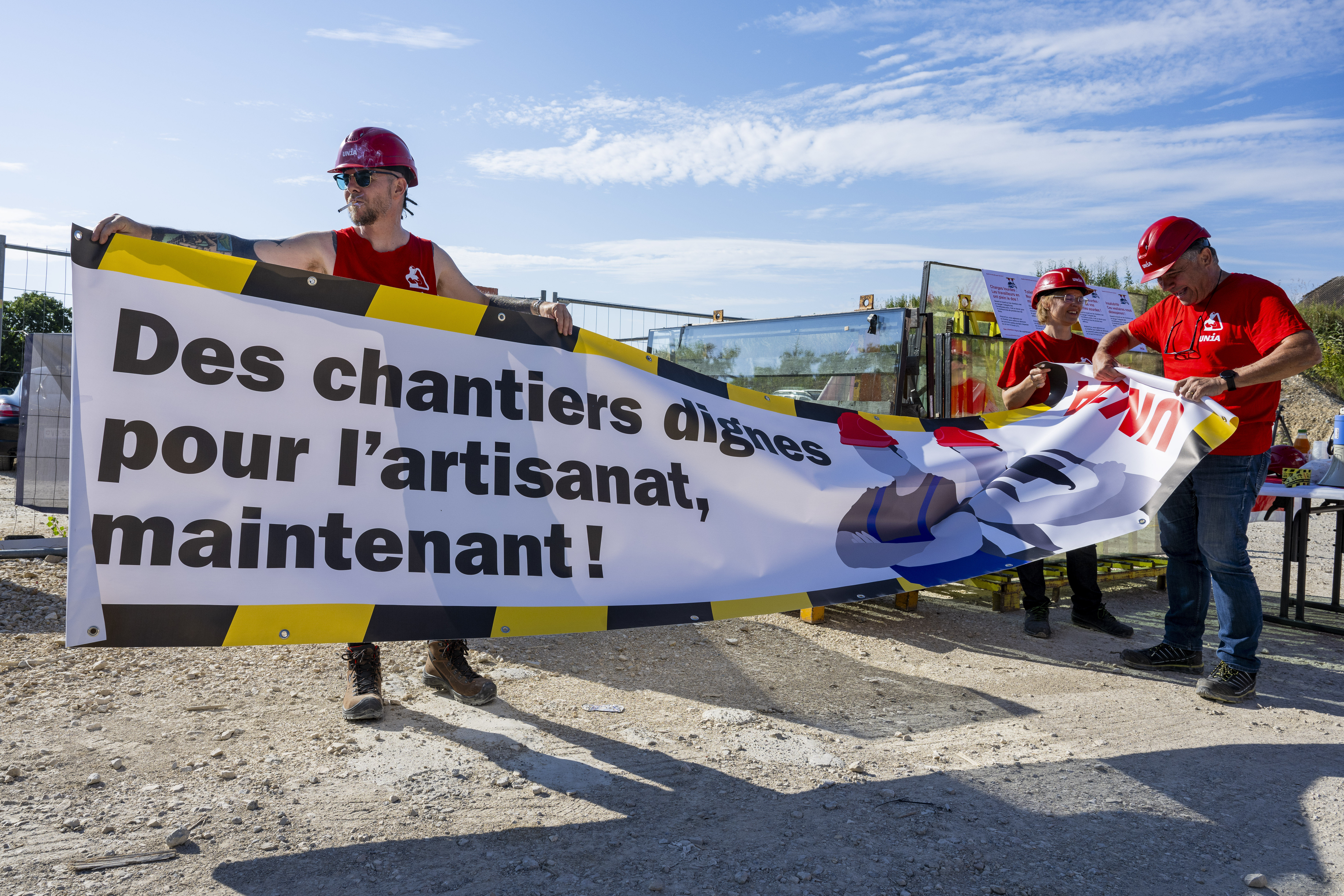 C’est pourquoi Unia a décidé de mener des actions surprises sur des cibles dans toute la Suisse romande pour réclamer des «Chantiers dignes». Les 2 et 3 juillet, des sites considérés comme problématiques ont reçu la visite de représentants du syndicat. A Saint-Aubin, dans le canton de Neuchâtel, des rubans «scène de crime» et des panneaux de dénonciation en format A3 ont par exemple été posés de manière symbolique dans les lieux incriminés. Les syndicalistes ont également pris des photos et des vidéos, fait des discours sur place, puis dénoncé les infractions auprès de la Direction technique et des Inspectorats cantonaux du travail. Pour Yannick Egger, coresponsable de la direction du secteur des arts et métiers à Unia, «ces actions ont pour but de rendre visibles des problématiques invisibilisées auprès de l’opinion publique et des autorités politiques. Nous le faisons en dévoilant des exemples concrets où les ordonnances spécifiques de la Loi sur le travail ne sont pas respectées.»