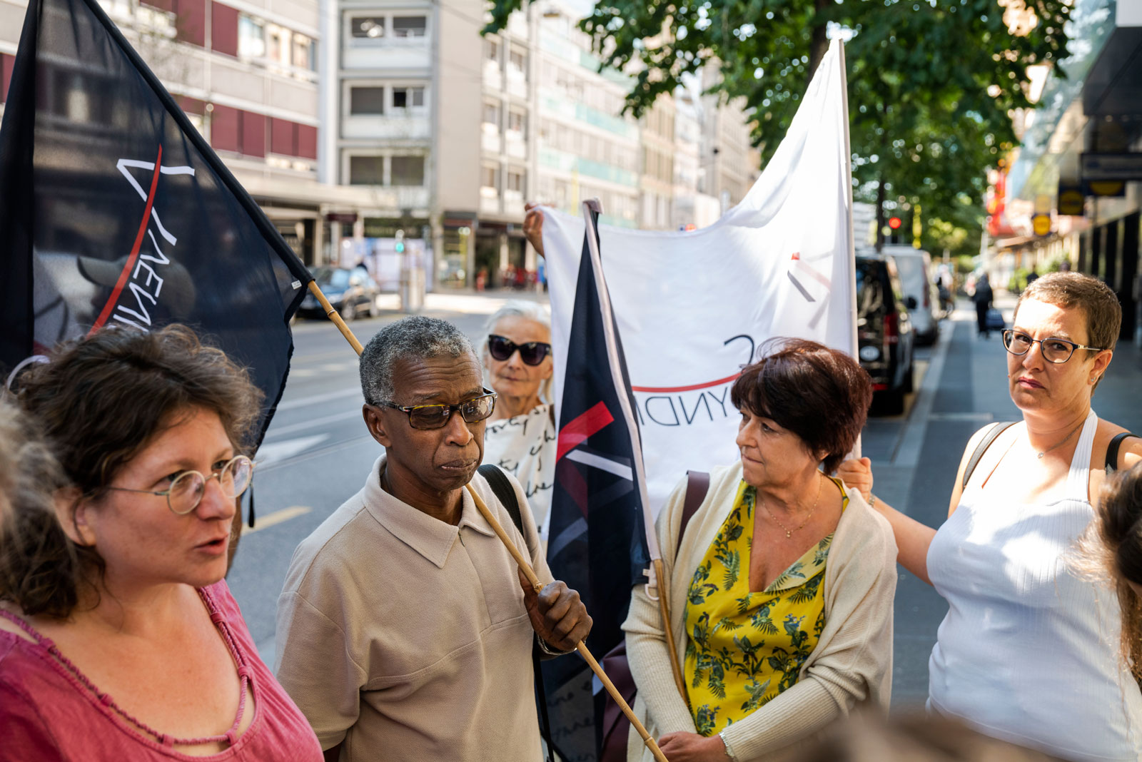 Une dizaine de membres d’Avenir syndical sont venus soutenir le délégué licencié lors de la conférence de presse tenue juste en face de l’EMS Notre-Dame le 28 juillet. Mahad va lutter pour obtenir l’annulation de son licenciement et sa réintégration. La défense des droits syndicaux est au cœur de son combat.