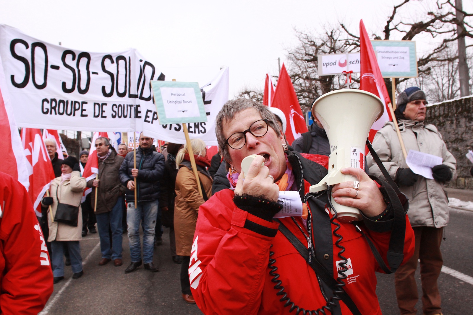 Je suis arrivée avec la crise financière de 2009 et je repars avec la crise du Covid-19… En 2009, nous nous sommes en effet retrouvés en pleine crise, on découvrait les dysfonctionnements du capitalisme flamboyant et arrogant de l’époque, le secteur financier s’écroulait engendrant une grande crise économique. Une immense manifestation a été organisée à Berne en septembre avec pour thème: «Pas question de payer votre crise!» Pour Neuchâtel, nous avons affrété quatorze cars. Je les revois garés au bord du lac, en rang d’oignons, puis roulant à la queue leu leu jusqu’à Berne. C’est le premier gros événement qui m’a marquée. Après, il y a eu les grandes grèves et les mouvements successifs des maçons. Dans le tertiaire, nous avons pu conclure une CCT de force obligatoire pour le personnel de vente de Neuchâtel, qui constitue un pas important pour les conditions de travail d’une frange de la population particulièrement précarisée, surtout dans un canton frontalier comme le nôtre où les risques de dumping sont grands. Il y a eu quelques grèves bien sûr. C’est celle d’EP Systems Aptar en 2013 qui m’a le plus marquée. On s’est retrouvés avec tout le personnel, à l’exception d’une dizaine de cadres, trois jours et trois nuits dans un froid de canard. Nous avons obtenu le doublement du plan social et son attribution à tout le personnel. Je peux citer également la longue et difficile grève à l’Hôpital de la Providence, en 2012-2013, qu’Unia a soutenue.